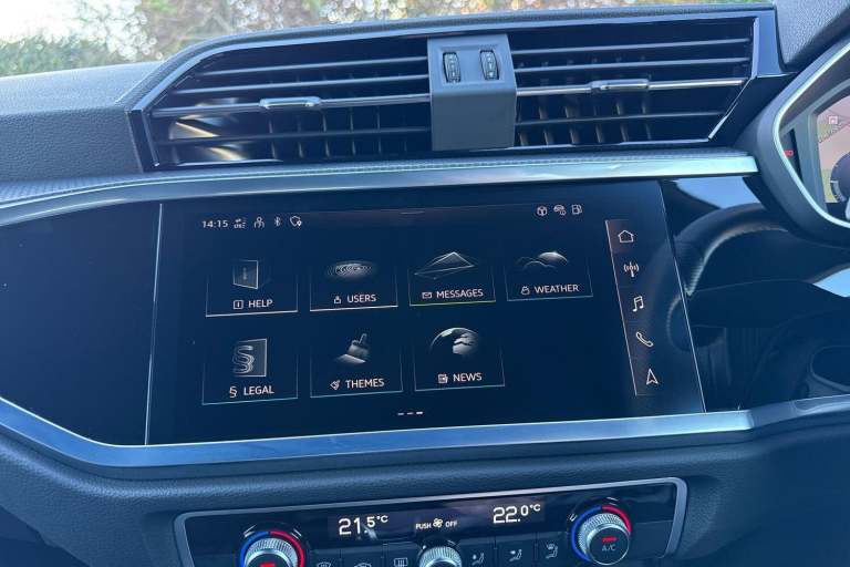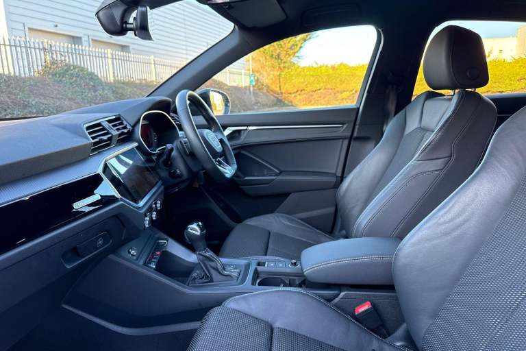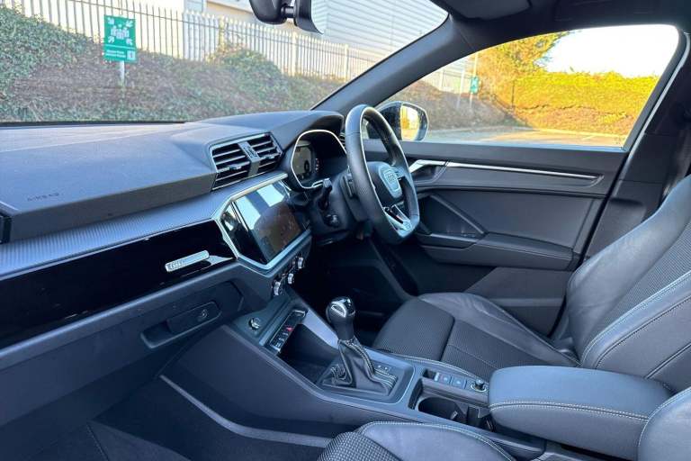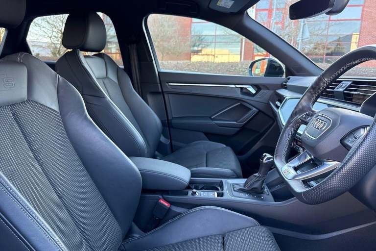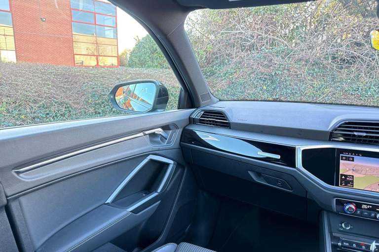 SATELLITE NAVIGATION, MULTI FUNCTION STEERING WHEEL, HILL HOLD ASSIST, CRUISE CONTROL, AUDI VIRTUAL COCKPIT, LANE DEPARTURE WARNING, APPLE CARPLAY, ANDROID AUTO, DAB RADIO, TINTED WINDOWS - PRIVACY GLASS, PARKING SENSORS, SPLIT FOLDING REAR SEATS, LIGHT & RAIN SENSOR, AUTO DIMMING REAR VIEW MIRROR, SELECTABLE DRIVING MODES, MYTHOS BLACK METALLIC WITH LEATHER/FABRIC UPHOLSTERY, 19'' 5 TWIN ARM DIAMOND CUT ALLOY WHEELS, DUAL ZONE CLIMATE CONTROL, LED HEADLIGHTS WITH DYNAMIC REAR INDICATORS, VOICE ACTIVATED CONTROLS AND MUCH MORE.All Audi Approved used cars are offered with a 12-month warranty and roadside assistance.Portsmouth Audi are delighted to offer this Audi Q3 in Mythos Black over Fabric/ Leather and has completed just 9851 miles., We are proud to be part of the Harwoods group, a family run business established in 1931. With four Approved Audi retailers within our group, we have access to over 400 vehicles. If this isn't the right car for you, please contact us and we will find it. Our group stock has spec to include Sunroof, Leather, Heated Seats, Apple Car Play, Heated Steering Wheel, Reverse Camera, Rear Entertainment, Towbar, 360-degree camera, Comfort & Sound Pack, Tech Pack, Panoramic Sun Roof, Tow Bar, Black Pack, Air Suspension, Apple Carplay, Adaptive Cruise, Massage Seats, Refrigerator, AWD, Technology Pack, Head up Display, Vorsprung, Technik, Black Edition, S-Line, S Line, Edition 1, TFSI, Quattro, Sportback, LWB. Other colour options including Black, Blue, Green, Silver, White, Red, Grey, Yellow, Orange. Interior options of Ebony, Black, Ivory, White, Tan, Cream, Oyster, & Euro 6 ULEZ compliant drive trains.