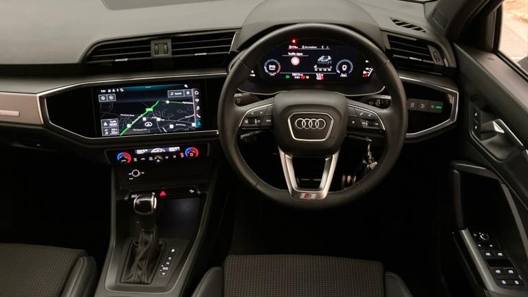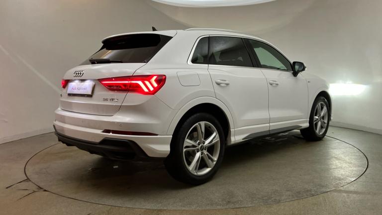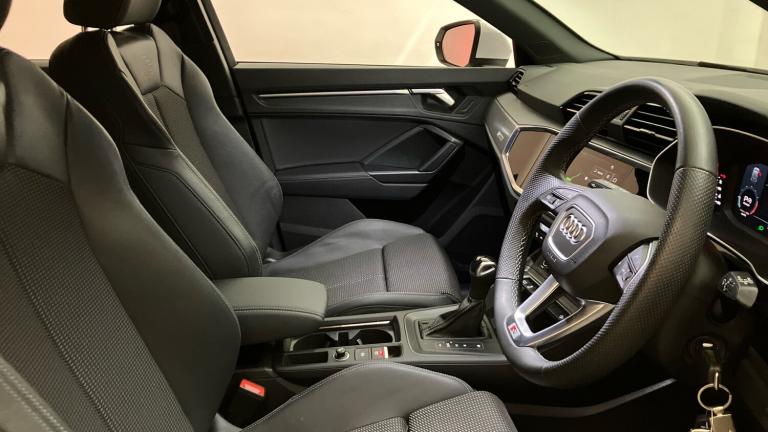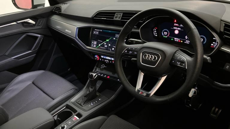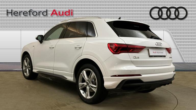 ***Audi Approved Used***We are delighted to offer this superb 2023 Audi Q3 S line 35 TFSI, finished in the ever-popular Ibis White. Powered by Audi’s smooth and efficient 1.5 TFSI petrol engine producing 150 PS and paired with the refined S tronic automatic gearbox, this Q3 delivers an excellent balance of performance, comfort and economy.This vehicle was supplied by us from new and has been serviced by us from new, providing complete peace of mind and a known, full history. The S line specification enhances the car’s sporty appeal with distinctive styling inside and out, while the Q3’s spacious interior, high driving position and premium Audi build quality make it an ideal choice for both family use and everyday driving.Presented in excellent condition throughout, this is a fantastic opportunity to own a stylish, practical and highly sought-after Audi SUV..Air Conditioning, Climate Control, Cruise Control, Satellite Navigation, Alloy Wheels, DAB Radio, Bluetooth, Parking Sensors, Stop Start, Full Service History, USB, Manufacturer Approved, Apple-Android Play, Electric Opening Tailgate, Auto Lights, Lane Departure& Rain Sensors, Front and rear black floor mats with contrast stitching in rock grey, Front and rear electric windows, Rain and light sensors, Acoustic windscreen, Dark tinted privacy glass (from B pillar backwards), Privacy glass dark tinted rear and rear-side windows (from B-pillar backwards), Rear wiper, Variable front intermittent wipers, Electronic stabilisation control including ABS, ASR and EDL, Hill descent control, Electromechanical parking brake, Bluetooth interface, Voice control system with natural language interaction, Audi smartphone interface includes wireless Apple carplay/Android Auto, Hill hold assist, Audi drive select, Audi lane departure warning