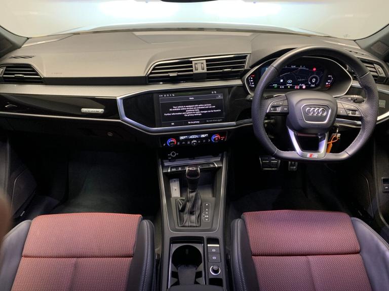 Discover the style and performance of the Audi Q3 Sportback Black Edition. Enjoy seamless navigation with MMI Navigation Plus and Sat Nav, enhanced by Apple CarPlay for easy connectivity. LED headlights and the Black Styling Package give this SUV a striking presence, while 20in alloy wheels provide a bold finishing touch. Stay comfortable with half leather seats and air conditioning, and drive confidently with lane departure warning, cruise control, and traffic sign recognition. Experience sporty driving with paddle shift and multiple driving modes. 3 services recorded, last serviced on 27/12/2025 at 15,399 miles. MOT to 29/09/2026. Visit our website for service history, online valuation, full vehicle specification plus multiple images. Certain features listed may be available via subscription packages at extra costs, please consult with Audi for details. Any feature/option specified here is from 3rd party data. We cannot guarantee the accuracy of any specification supplied by a 3rd party. We recommend that you physically check the specification of the vehicle on site prior to purchase. This information does not form part of the buying contract. Terms & Conditions apply. We have over 2,000 cars available from our 10 national branches, check our website to see all our stock. Our Trustpilot rating is 4.4/5 with over 9,000 reviews.