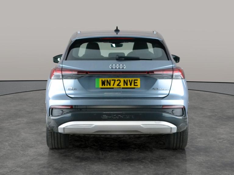 Experience the Audi Q4 E-tron Sport, finished in striking blue and equipped with the sought-after Technology and Comfort & Sound packages. Immerse yourself in premium features like an upgraded sound system, heated seats, and advanced MMI Navigation Plus with Apple CarPlay. Enjoy confident driving with LED headlights, reversing camera, lane departure warning, and front and rear parking sensors. Stay connected with Bluetooth audio streaming and cruise through every journey with adaptive driving modes and traffic sign recognition. 1 service recorded, last serviced on 24/01/2025 at 8,193 miles. MOT to 05/02/2027. Visit our website for service history, online valuation, full vehicle specification plus multiple images. Certain features listed may be available via subscription packages at extra costs, please consult with Audi for details. This vehicle is VAT qualifying. Any feature/option specified here is from 3rd party data. We cannot guarantee the accuracy of any specification supplied by a 3rd party. We recommend that you physically check the specification of the vehicle on site prior to purchase. This information does not form part of the buying contract. Terms & Conditions apply. We have over 2,000 cars available from our 10 national branches, check our website to see all our stock. Our Trustpilot rating is 4.4/5 with over 9,000 reviews.