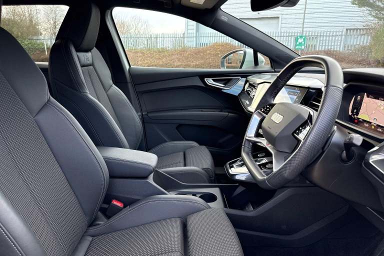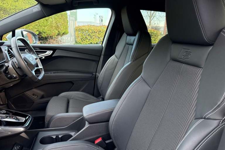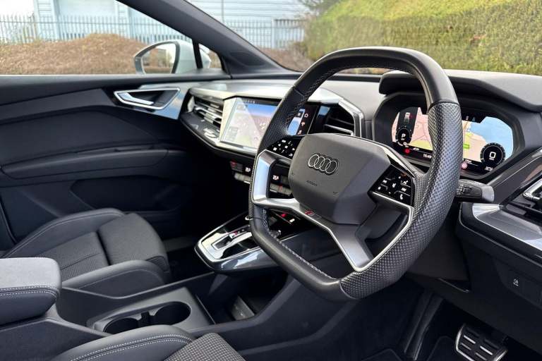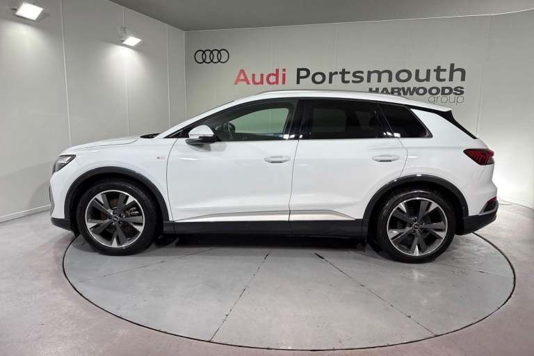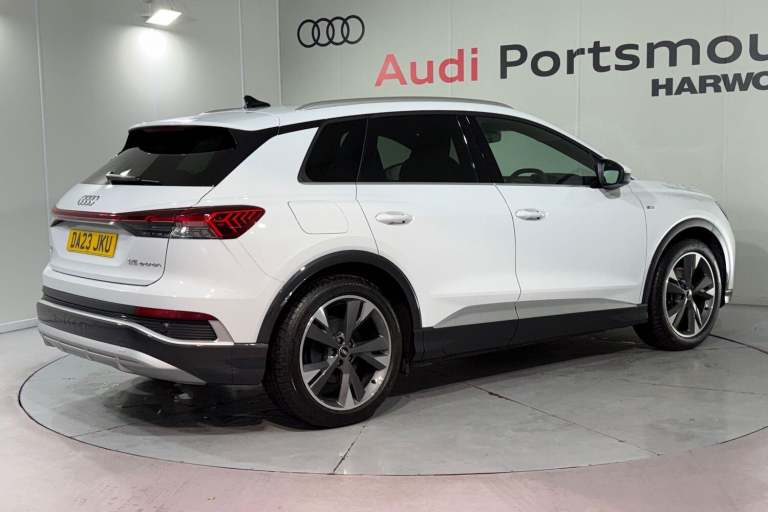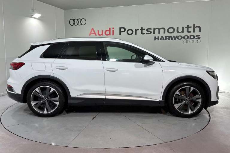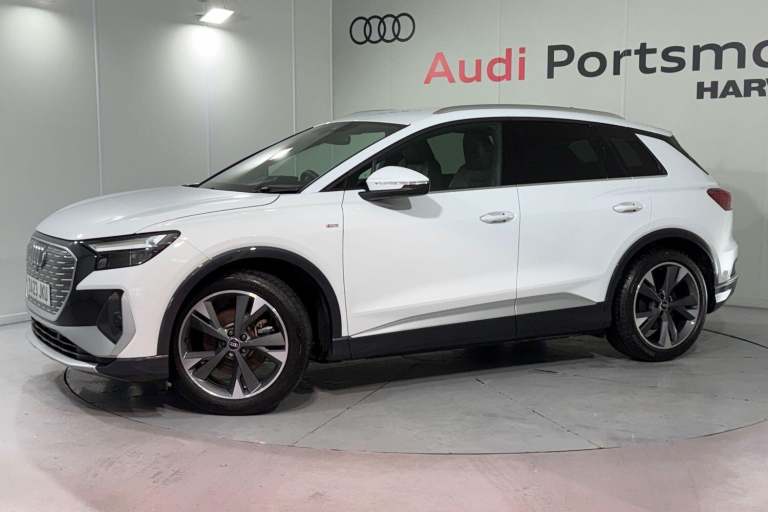 SATELLITE NAVIGATION, AMBIENT LIGHTING PACK, SPORT SUSPENSION, S LINE PACK, FRONT SPORT SEATS, MULTI FUNCTION STEERING WHEEL, HILL HOLD ASSIST, CRUISE CONTROL, AUDI VIRTUAL COCKPIT, LANE DEPARTURE WARNING, APPLE CARPLAY, ANDROID AUTO, DAB RADIO, TINTED WINDOWS - PRIVACY GLASS, FRONT AND REAR PARKING SENSORS, SPLIT FOLDING REAR SEATS, LIGHT & RAIN SENSOR, AUTO DIMMING REAR VIEW MIRROR, SELECTABLE DRIVING MODES, PUSH BUTTON START, GLACIER WHITE METALLIC WITH LEATHER/FABRIC UPHOLSTERY, 20'' 5 Y SPOKE ALLOY WHEELS, DUAL ZONE CLIMATE CONTROL, HEATED FRONT SEATS WITH LUMBAR SUPPORT, LED HEADLIGHTS WITH DYNAMIC REAR INDICATORS, VOICE ACTIVATED CONTROLS AND MUCH MORE.This car comes with the balance of the manufacturer’s warranty until 29/4/2026.Portsmouth Audi are delighted to offer this Audi Q4 in Glacier white over Fabric/ Leather and has completed just 4579 miles., We are proud to be part of the Harwoods group, a family run business established in 1931. With four Approved Audi retailers within our group, we have access to over 400 vehicles. If this isn't the right car for you, please contact us and we will find it. Our group stock has spec to include Sunroof, Leather, Heated Seats, Apple Car Play, Heated Steering Wheel, Reverse Camera, Rear Entertainment, Towbar, 360-degree camera, Comfort & Sound Pack, Tech Pack, Panoramic Sun Roof, Tow Bar, Black Pack, Air Suspension, Apple Carplay, Adaptive Cruise, Massage Seats, Refrigerator, AWD, Technology Pack, Head up Display, Vorsprung, Technik, Black Edition, S-Line, S Line, Edition 1, TFSI, Quattro, Sportback, LWB. Other colour options including Black, Blue, Green, Silver, White, Red, Grey, Yellow, Orange. Interior options of Ebony, Black, Ivory, White, Tan, Cream, Oyster, & Euro 6 ULEZ compliant drive trains.