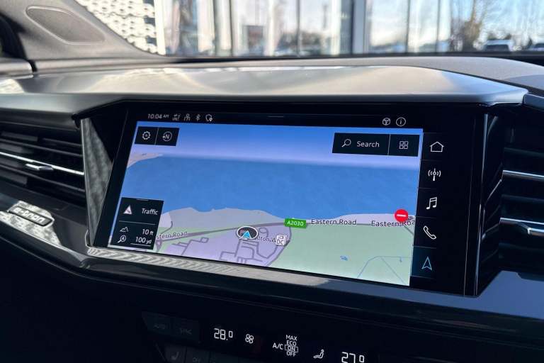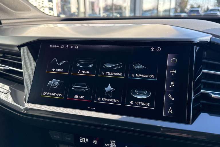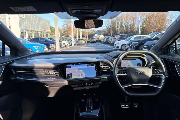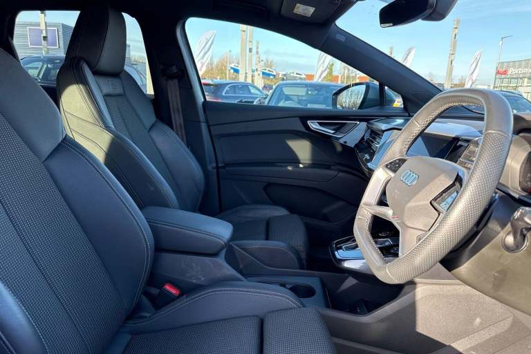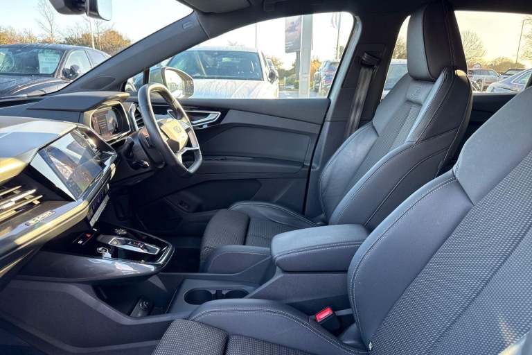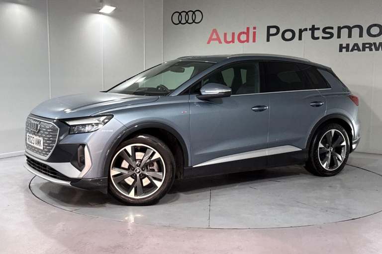 SATELLITE NAVIGATION, AMBIENT LIGHTING PACK, SPORT SUSPENSION, S LINE PACK, MULTI FUNCTION STEERING WHEEL, HILL HOLD ASSIST, CRUISE CONTROL, AUDI VIRTUAL COCKPIT, LANE DEPARTURE WARNING, APPLE CARPLAY, ANDROID AUTO, DAB RADIO, TINTED WINDOWS - PRIVACY GLASS, FRONT AND REAR PARKING SENSORS, SPLIT FOLDING REAR SEATS, LIGHT & RAIN SENSOR, AUTO DIMMING REAR VIEW MIRROR, SELECTABLE DRIVING MODES, PUSH BUTTON START, GEYSER BLUE METALLIC WITH LEATHER UPHOLSTERY, 20'' 5 Y SPOKE ALLOY WHEELS, DUAL ZONE CLIMATE CONTROL, HEATED FRONT SEATS WITH LUMBAR SUPPORT, LED HEADLIGHTS WITH DYNAMIC REAR INDICATORS, VOICE ACTIVATED CONTROLS AND MUCH MORE.All Audi Approved used cars are offered with a 12-month warranty and roadside assistance.This car comes with the balance of the manufacturer’s warranty until 26/3/2026.Portsmouth Audi are delighted to offer this Audi Q4 in Geyser blue over Fabric/ Leather and has completed just 30353 miles., We are proud to be part of the Harwoods group, a family run business established in 1931. With four Approved Audi retailers within our group, we have access to over 400 vehicles. If this isn't the right car for you, please contact us and we will find it. Our group stock has spec to include Sunroof, Leather, Heated Seats, Apple Car Play, Heated Steering Wheel, Reverse Camera, Rear Entertainment, Towbar, 360-degree camera, Comfort & Sound Pack, Tech Pack, Panoramic Sun Roof, Tow Bar, Black Pack, Air Suspension, Apple Carplay, Adaptive Cruise, Massage Seats, Refrigerator, AWD, Technology Pack, Head up Display, Vorsprung, Technik, Black Edition, S-Line, S Line, Edition 1, TFSI, Quattro, Sportback, LWB. Other colour options including Black, Blue, Green, Silver, White, Red, Grey, Yellow, Orange. Interior options of Ebony, Black, Ivory, White, Tan, Cream, Oyster, & Euro 6 ULEZ compliant drive trains.