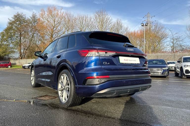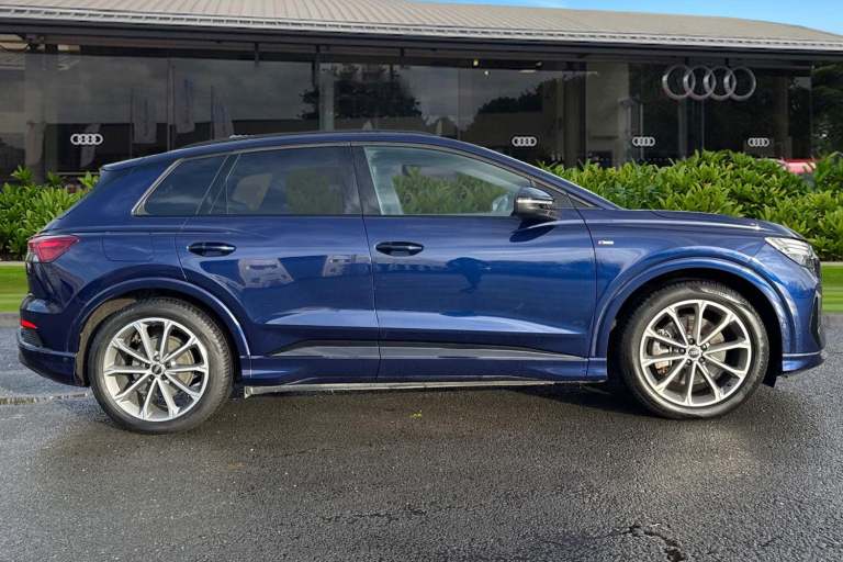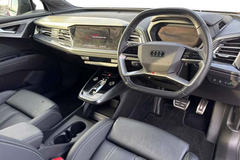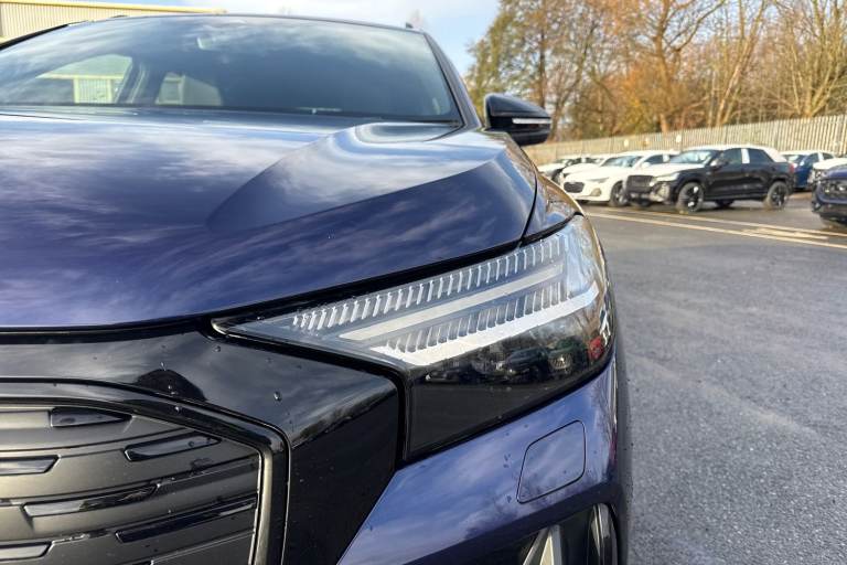 This Approved Used 2023 Audi Q4 e-tron Edition 1 is the ideal eco-friendly upgrade. As an Audi manufacturer approved vehicle, it offers peace of mind, featuring a substantial 82 kWh battery that provided an impressive 300 miles of range when new. This electric four wheel drive model is equipped with advanced Matrix LED Headlights, complete with digital light signatures, dynamic light sequencing, and dynamic indicators, enhancing both visibility and the vehicles distinctive presence. Experience exhilarating performance with the Q4 e-trons rapid 0-62mph acceleration in just 6.2 seconds, a testament to its electric power. This capability, combined with its generous boot space, positions it favourably against other vehicles in its class. Charging is convenient, with a full charge at home taking approximately 11 hours and 30 minutes using a 7kW charger, while rapid public charging can replenish the battery from empty to 80% in as little as 38 minutes, ensuring you can get back on the road quickly. This vehicle is compliant with Clean Air Zone (CAZ) or Ultra Low Emission Zone (ULEZ) regulations, meaning it produces low emissions and helps to improve air quality in our cities. If this is the electric vehicle for you, please contact us to arrange a viewing or test drive.
