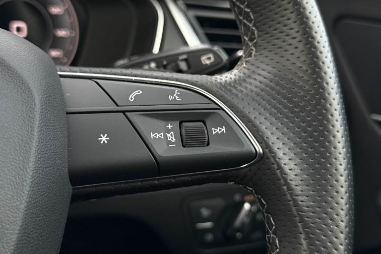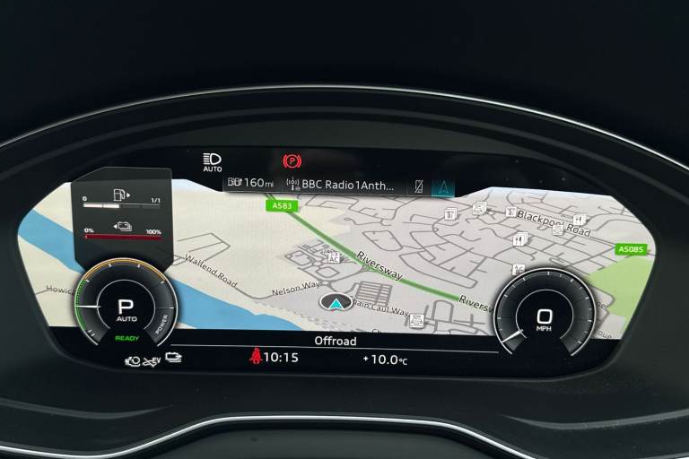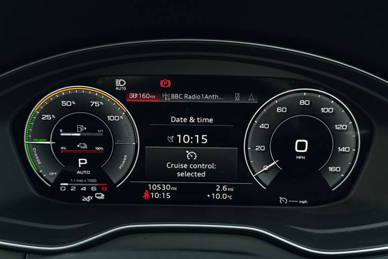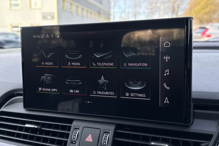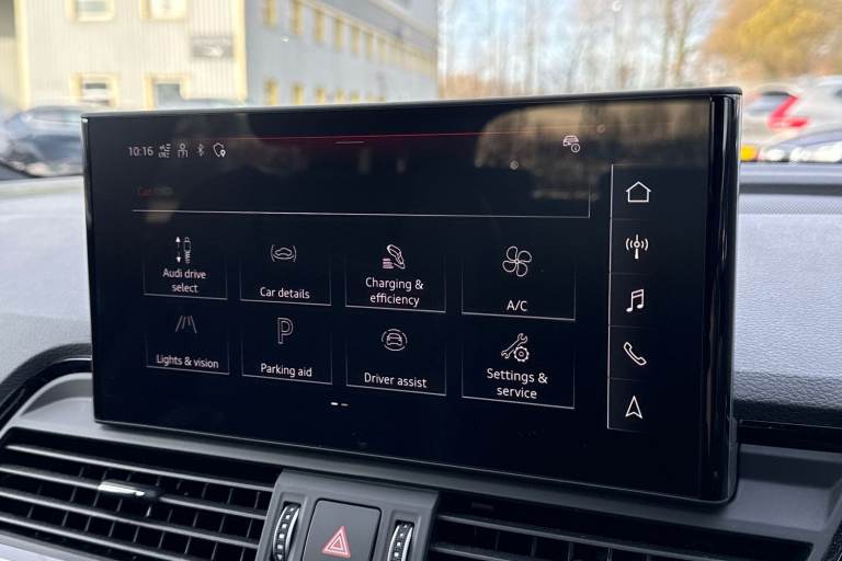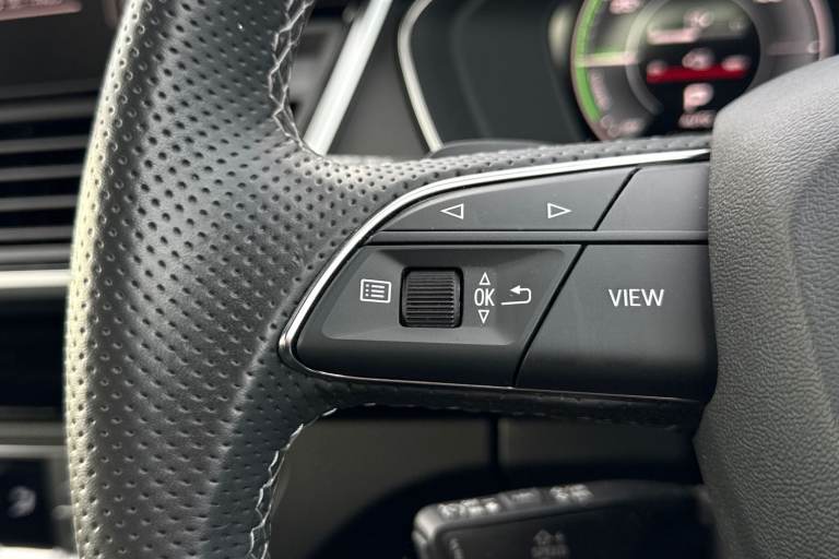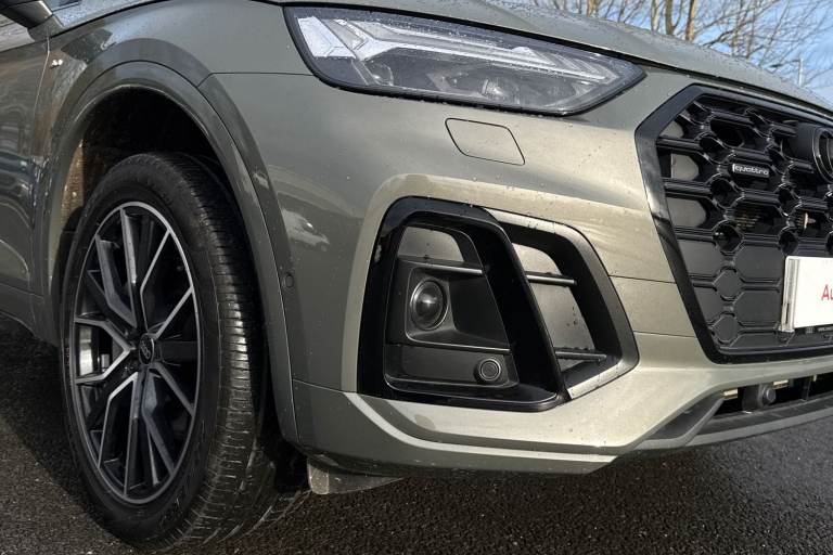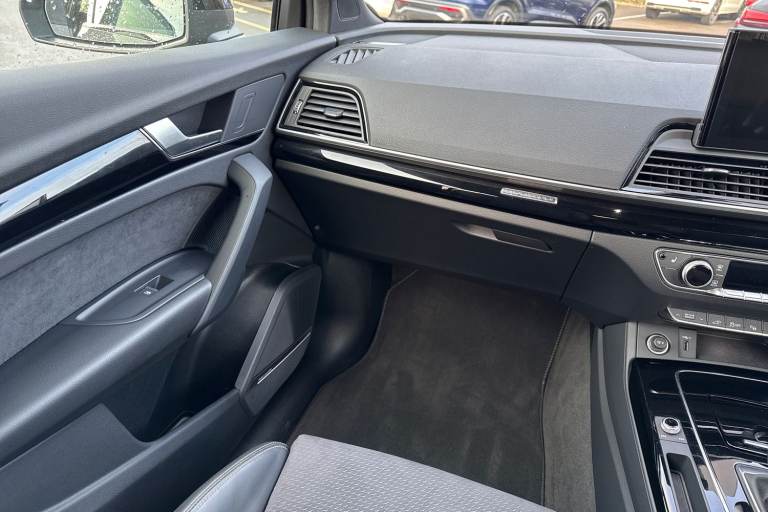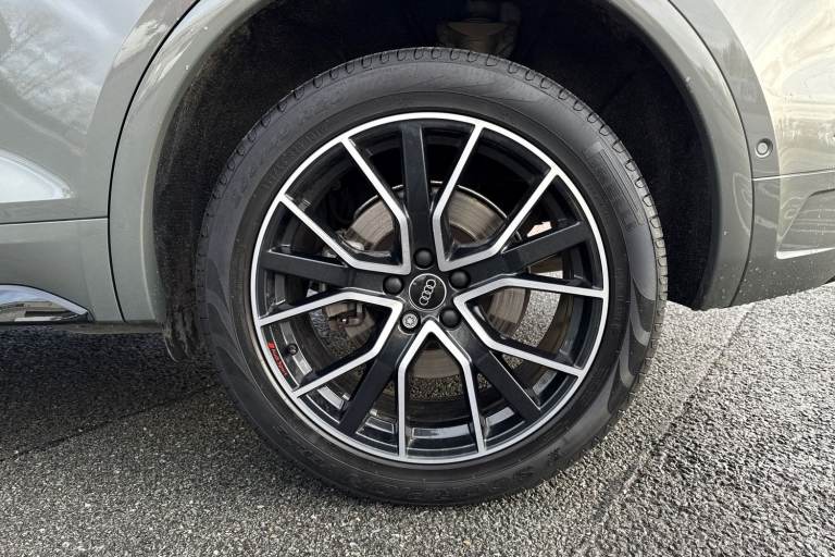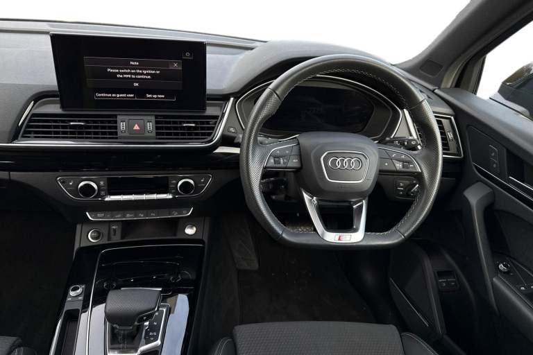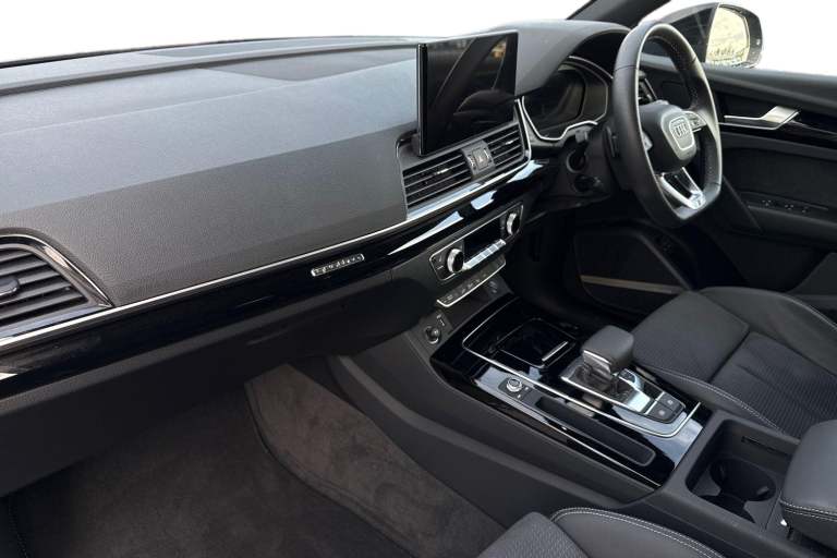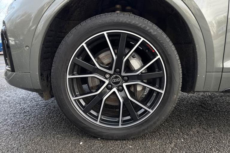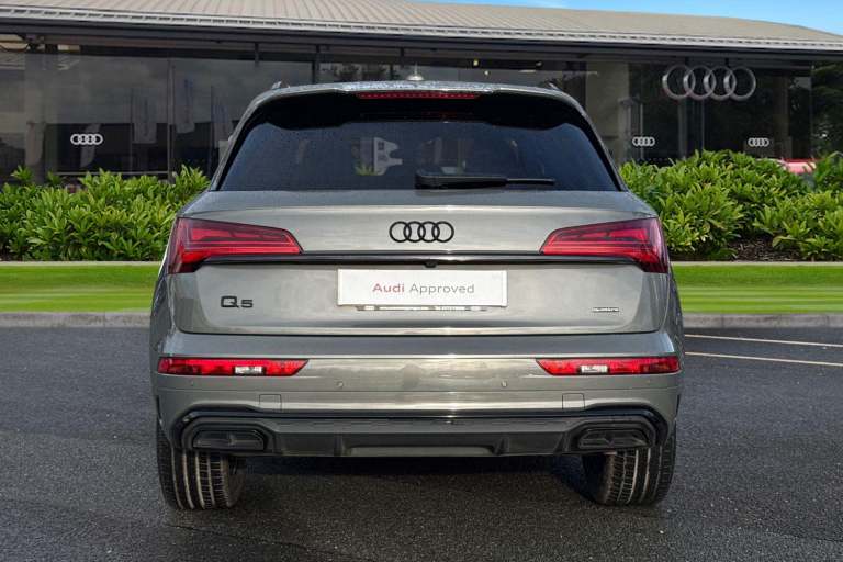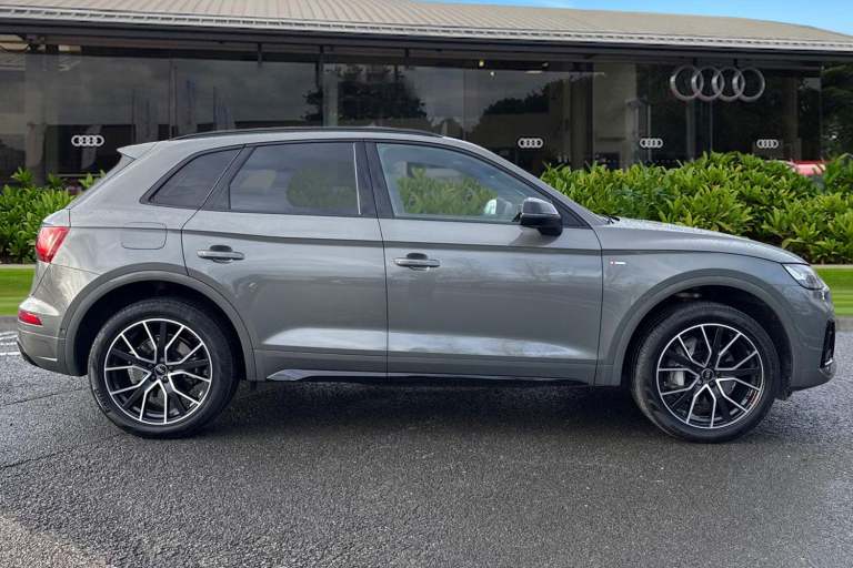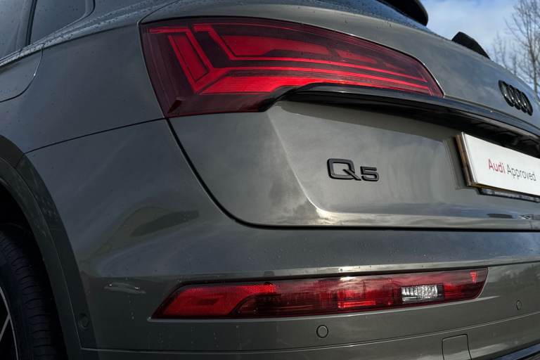 A rare opportunity to own a superbly specified Audi Q5 MY23.5 Black Edition 50 TFSI e quattro, finished in sophisticated Chronos Grey and combining plug-in hybrid efficiency with an impressive 299 PS. Paired with the smooth S tronic transmission and legendary quattro all-wheel drive, this model delivers effortless performance. This Black Edition stands out with its commanding road presence, enhanced by the Black Styling Package, black roof rails, black door mirrors and High Gloss Pack detailing. It sits on striking 20-inch alloy wheels, including the distinctive 5-segment-spoke graphite grey design with gloss turned finish and 5-V-Spoke Star Audi Sport alloys in anthracite black. Matrix LED headlights provide exceptional visibility while adding to the vehicles sharp and modern appearance. Inside, the cabin is both luxurious and technologically advanced. Heated front seats with contrast stitching, a flat-bottomed three-spoke multi-function steering wheel and black cloth headlining create a refined yet sporty environment. The deluxe three-zone electronic climate control and auto-dimming frameless rear-view mirror enhance everyday comfort. The Audi Virtual Cockpit with a 12.3-inch display features a specific layout for plug-in hybrid systems, keeping you fully informed of both performance and efficiency data. Technology is seamlessly integrated with MMI Navigation Plus via a 10.1-inch touchscreen, Audi Connect with Amazon Alexa integration, Audi Wireless Smartphone Interface...