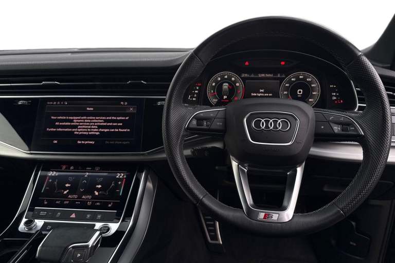 Turn heads wherever you go with this stunning Audi Q7 in Metallic Mythos Black. Combining sophisticated design with exhilarating performance, its powered by a 3.0L petrol engine with an automatic transmission, delivering effortless power, smooth acceleration, and a refined, responsive drive that makes every journey a pleasure. Step inside and experience a cabin built for both comfort and convenience. Heated seats provide warmth and luxury, while Apple CarPlay and Android Auto keep you seamlessly connected to your favourite apps, navigation, and entertainment. Manoeuvring is effortless thanks to the rearview camera and front and rear parking sensors, making parking in tight spaces a stress-free experience. For those who love to tailor their driving experience, the Drive Select mode allows you to adjust handling and performance to suit your mood, whether youre seeking a relaxed, comfortable cruise or a sportier, more dynamic ride. Every detail of the Audi Q7 has been designed with precision, from its bold exterior styling to its technologically advanced interior. With its combination of commanding presence, cutting-edge technology, and refined luxury, this Q7 is more than just a vehicleits a statement. Perfect for families, professionals, or anyone who wants a versatile SUV that delivers style, performance, and sophistication in equal measure. This vehicle is compliant with Clean Air Zone (CAZ) or Ultra Low Emission Zone (ULEZ) regulations, meaning it produces low emi...
