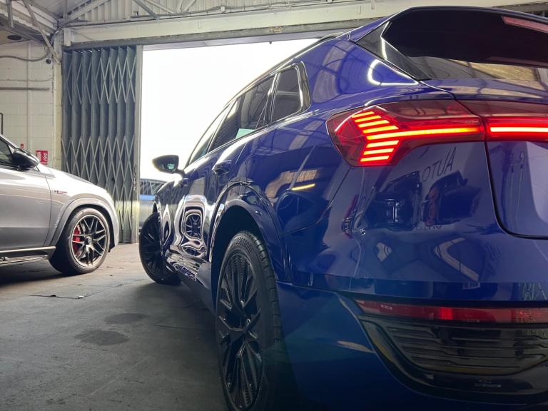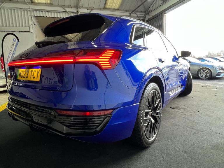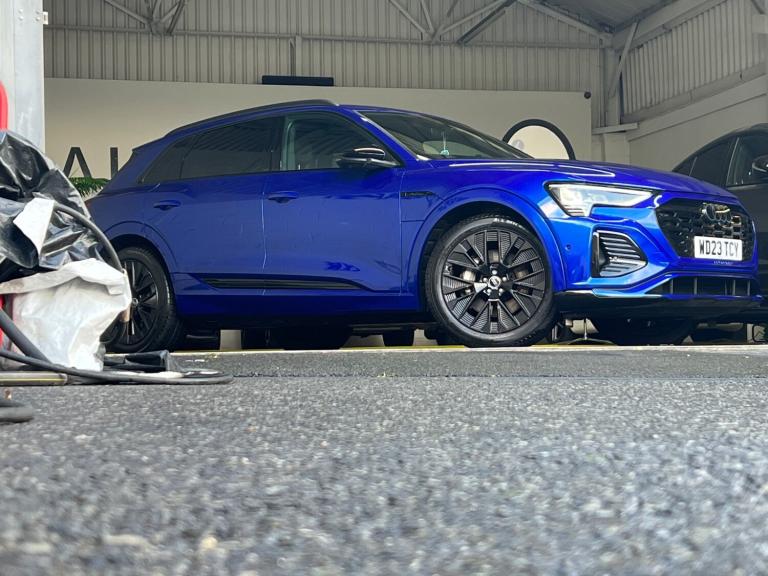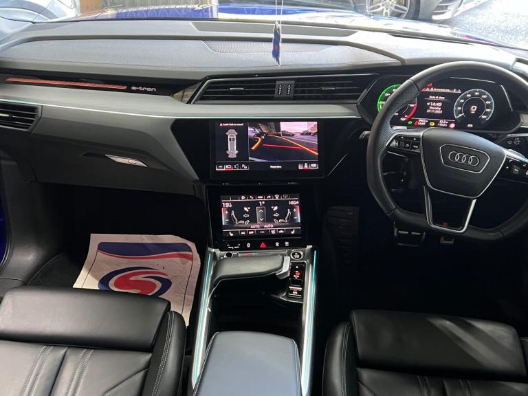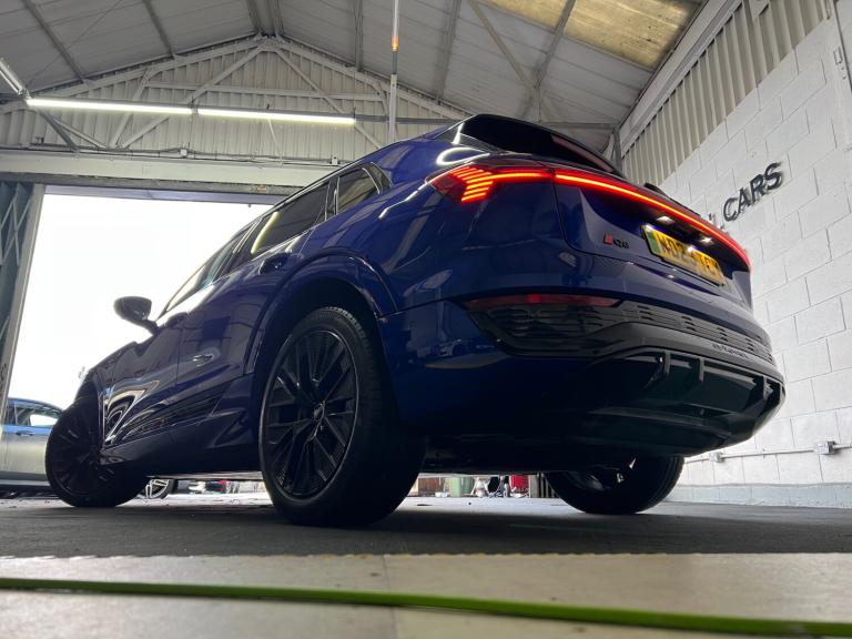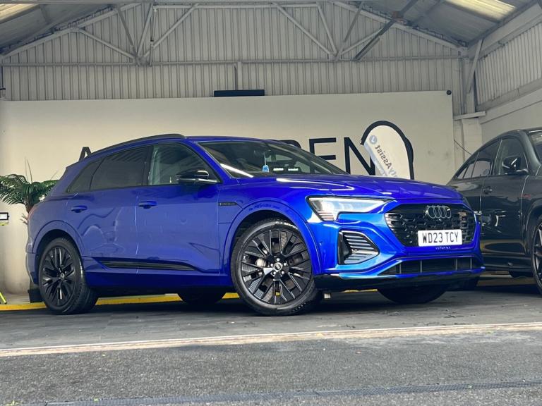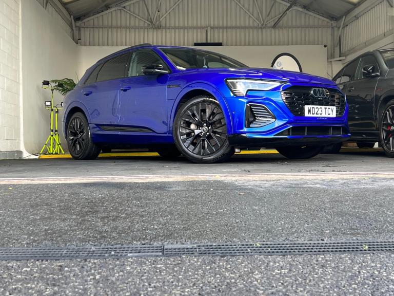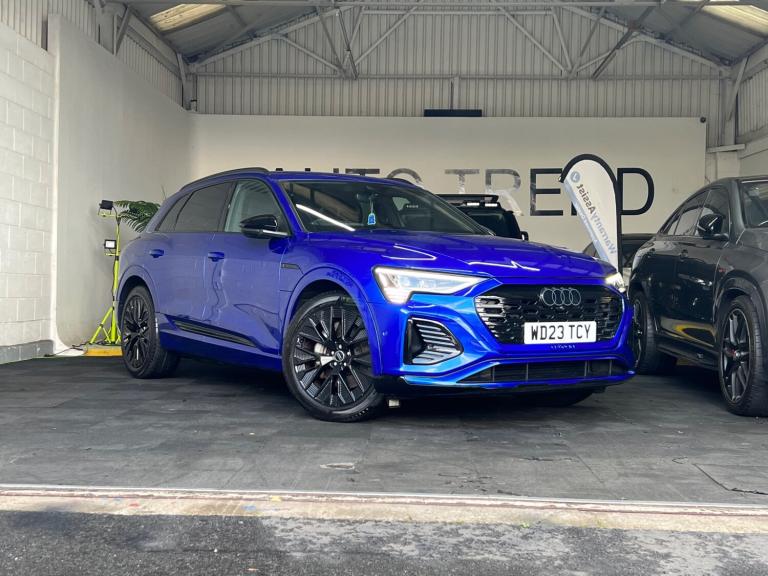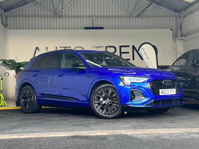Arrived new at auto trend is Audi q8 etron ev black edition very low miles only covered 9600 miles The Audi Q8 e-tron Black Edition 55 QuattroExperience the future of mobility with the commanding Audi Q8 e-tron Black Edition 55 Quattro 114kWh. This all-electric SUV perfectly blends sophisticated design, thrilling performance, and everyday practicality, offering a luxurious and refined driving experience that is purely Audi.Striking Black Edition DesignTurn heads with the Q8 e-tron's assertive road presence. The Black Edition trim enhances its sporty, stealth aesthetic with exclusive design elements:Gloss Black Styling Pack: Features high-gloss black accents on the front grille surround, bumpers, window trims, and exterior door mirrors.Distinctive Wheels: Rolls on striking 21-inch gloss black alloy wheels that perfectly complement the dark exterior styling.Privacy Glass: Dark-tinted rear and rear side windows offer enhanced privacy and a sleek finish.Electrifying Performance & Extended RangeBeneath its sculpted bonnet, two powerful electric motors (one on each axle) deliver exhilarating, all-wheel-drive performance with zero tailpipe emissions.Power & Speed: A robust 300 kW (402 bhp / 408 PS) output and 664 Nm of torque propel the SUV from 0-62 mph in just 5.6 seconds.Long-Distance Capability: The substantial 114 kWh high-voltage battery (106 kWh usable) offers an impressive official WLTP electric range of approximately 315 to 345 miles, making range anxiety a thing of the past.Rapid Charging: Quickly replenish the battery with DC rapid charging capability of up to 170 kW, allowing a 10% to 80% charge in around 31 minutes at a suitable public charger.A Sanctuary of Luxury & TechnologyStep inside a cabin that sets the standard for premium electric SUVs. The interior is meticulously crafted with high-quality materials, solid build quality, and cutting-edge technology.Plush Interior: Enjoy front sports seats with an 'S' embossed logo, upholstered in luxurious Valcona leather, with heating functions for ultimate comfort.Intuitive Infotainment: Command your journey via a dual-touchscreen MMI infotainment system with haptic feedback, along with the highly customisable Audi Virtual Cockpit digital instrument display. Standard features include wireless Apple CarPlay and Android Auto connectivity, as well as a wireless charging pad for your devices.Smooth & Silent Drive: Standard adaptive air suspension ensures a supremely quiet, comfortable, and composed ride, gliding over road imperfections with ease.Practicality for Everyday AdventuresThe Q8 e-tron is a spacious, five-seater family SUV designed for real-world usability.Generous Space: Enjoy ample head and legroom for all passengers and a substantial 569-litre boot capacity (SUV model) with an additional ""frunk"" storage area under the bonnet for charging cables.Safety Assured: The vehicle comes equipped with a comprehensive suite of safety features, including a rear-view camera, parking sensors, lane departure warning, and Audi pre-sense front.Towing Capacity: With a maximum braked towing weight of up to 1,800kg, it's ready for all your needs.The Audi Q8 e-tron Black Edition 55 Quattro delivers an unparalleled blend of style, performance, and luxurious comfort, establishing the new standard for electric mobility.For any more information get intouch NATIONWIDE DELIVERY ON ALL VEHICLES