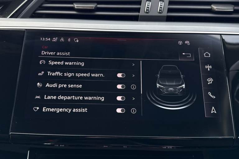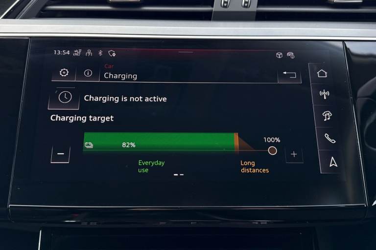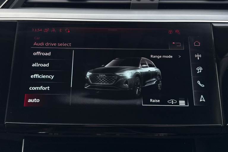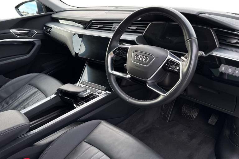Looking to make the electric switch This 2023 Audi Q8 e-tron Sport is a remarkable example. This electric, four wheel drive SUV offers a substantial 114 kWh battery, providing a maximum range of 330 miles when new. Inside, youll find the Technology Pack Pro, which includes climate control, a head up display, a premium branded sound system, and heated seats for enhanced comfort. The Sport trim also features a fixed panoramic glass sunroof, parking assistance with a 360 degree camera, and electrically adjustable front seats with a memory function for the driver. Audi Matrix LED headlights with dynamic indicators add a sophisticated touch, illuminating your journey with coming and leaving home animations. The Q8 e-tron Sport excels with its impressive performance, accelerating from 0 to 62 miles per hour in just 5.6 seconds, demonstrating its dynamic capability. For convenience, a full charge at home using a 7kW charger takes approximately 18 hours, while rapid public charging can take you from empty to 80% in as little as 35 minutes. This vehicle also boasts a large boot space, offering ample room for all your luggage and shopping needs. These highlights collectively position the Audi Q8 e-tron Sport as a superior choice for those seeking an electric SUV that combines advanced technology, impressive range, and practical space. This vehicle is compliant with Clean Air Zone (CAZ) or Ultra Low Emission Zone (ULEZ) regulations, meaning it produces low emissions and helps to...