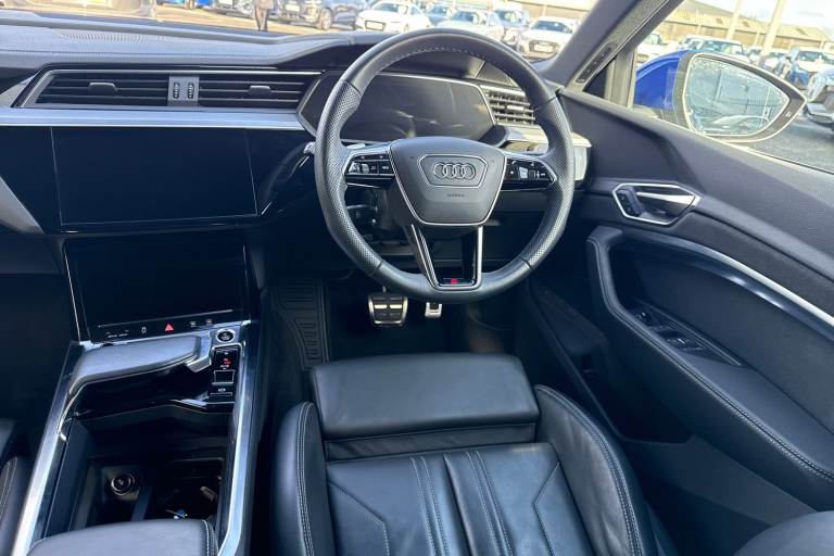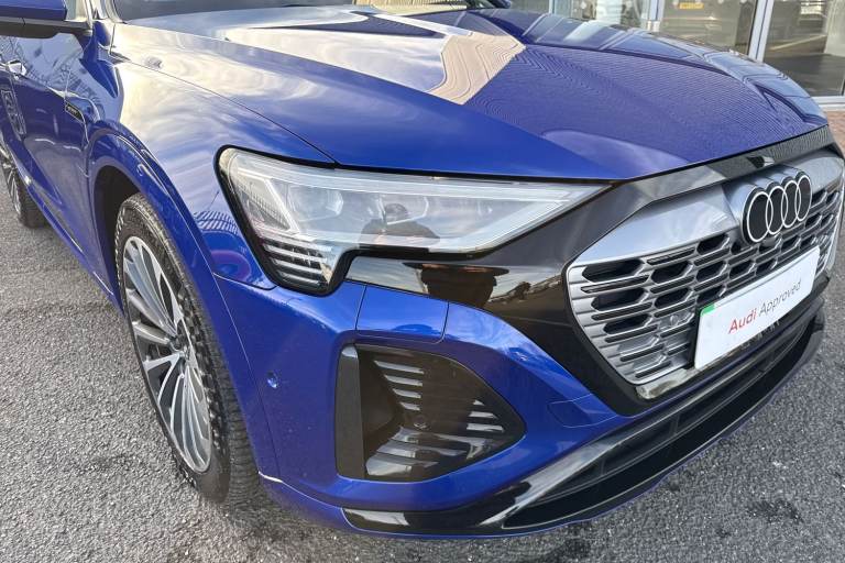 *Free Ohme Home Charger available to retail customers only* Carlisle Audi is pleased to introduce this Ultra Blue Audi Q8 S Line, finished in the striking Ultra Blue. This vehicle sits on a set of 21"" alloy wheels that allow you to stand out from the crowd, this vehicle also comes with privacy glass that enhances your privacy within the vehicle. To the front of the vehicle youll find LED Headlights with daytime running lights, designed to perfectly illuminate the road no matter the driving conditions. This electric vehicle comes with a rear view camera, allowing you to easily park and manoeuvre your vehicle no matter how tight the space. This vehicle comes with 2-zone climate control that allows you to easily control the temperature within your vehicle to suit your liking. This vehicle also comes with a multifunction steering wheel, allowing you to easily control your music, cruise control and Audi Virtual Cockpit. Here you can see information about your car, phone connectivity and navigation system, keeping you informed on the move. The dash is also fitted with an MMI Touchscreen, allowing you to easily connect your phone to the vehicle using Android Auto or Apple Carplay.