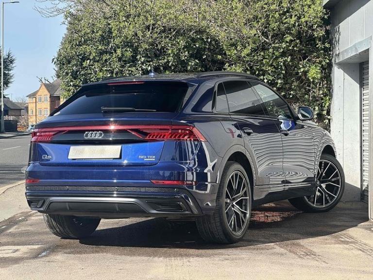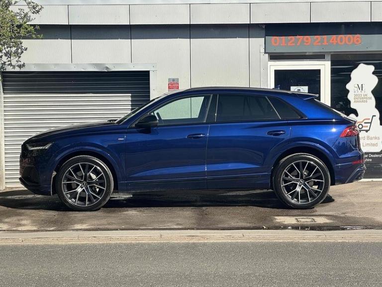 City Assist Pack,Heated 3-Spoke Leather High Multi-Function Steering Wheel with Gear-Shift Paddles,Technology Package,Tour Pack,Navarra Blue,Valcona Leather - Black, AMI - Audi Music Interface, Audi Connect - 3 Year Subscription, Audi Connect Safety and Service - e-call, Audi Connect with Amazon Alexa Integration, Audi Smartphone Interface, Audi Sound System, Audi Virtual Cockpit - 12.3in High Resolution LCD Display, DAB Digital Radio, MMI Navigation Plus including MMI Touch, Audi Drive Select with 7 Modes, Camera Based Traffic Sign Recognition, Cruise Control with Speed Limiter, Lane Departure Warning, Natural Voice Recognition, Parking System Plus with 360 Degree Display - Front - Rear and Side Sensors, Rear-View Camera, Tyre Pressure Loss Indicator, 22in Alloy Wheels - 5-Twin-Spoke Design, Anthracite Black Door Mirrors, Anti-Theft Wheel Bolts and Wheel Loosening Warning, Black Styling Pack Plus, Door Mirrors - Black Housing, Door Mirrors - Electrically Adjustable - Heated - Folding - Automatically Dimming with Memory Function and Integrated LED Indicators with Kerb View Function for Passenger Side, Electric Windows - Front, Platinum Grey Front Spoiler Lip and Diffuser Insert with Honeycomb Grid in Black, Privacy Glass - Dark-Tinted Rear and Rear-Side Windows - From B-Pillar Backwards, Tyre Repair Kit, Windshield with Heat Insulated Glass, Audi Beam, Coming-Leaving Home Animations in Front and Rear, HD Matrix LED Headlights and Dynamic Front and Rear Indicators, Headlight Washers, Light and Rain Sensor, Signature LED Daytime-Running Lights, 2-Zone Automatic Climate Control, 4-Way Lumbar Support for Front Seats, Audi Phone Box Light, Auto Dimming and Frameless Rear View Mirror, Black Cloth Headlining, Comfort Front Centre Armrest, Electrically Adjustable Front Seats with Driver Memory Function, Front and Rear Floor Mats, Front Sun Visors with Illuminated Vanity Mirrors, Heated Front Seats, Illuminated Door Sill Trims with S Line Logo, Inlays - Polished Oak with Grey Finish, LED Interior Ambient Lighting, Luggage Compartment Sill Protection in Stainless Steel, Operating Buttons in Black - Glass Look, Pedals in Stainless Steel, Power Operated Tailgate, Rear Bench Seat Plus, Steering Wheel - 3-Spoke Leather-Multi-function-Flat Bottomed-Sports-Shift Paddles, Tool Kit, Adaptive Air Sport Suspension, Electromechanical Power Steering, Quattro with Self-Locking Centre Differential, Anti-Theft Alarm with Tow-Away Protection, Audi Pre-Sense Front, Driver - Front Passenger - Front Side and Curtain Airbag System, Electromechanical Parking Brake, ESC - Electronic Stabilisation Control inc ABS - ASR and EDL, First Aid Kit and Warning Triangle, Hill Descent Control, Hill Hold Assist, ISOFIX Child Seat Mounting for Front Passenger, Keyless Go with Remote Central Locking, Seat Belt Monitoring, Standard Pedestrian Protection Measures.GREAT FINANCE PACKAGES AVAILABLEPresenting an Audi Q8 Black Edition finished in Navarra Blue complemented with a black leather interior. Buy with confidence as we are an AA approved dealer. FREE 12 month AA breakdown cover with any vehicle. This vehicle is supplied with Audi service history and 2 keys. We are finance specialists with access to over 40 financial lenders. Personalised finance quotations are available upon request, or use our calculator below. All vehicles are HPI clear unless otherwise declared and are fully health checked prior to sale. Nationwide delivery available. All vehicles are supplied with a 6 month warranty. You can extend the 6 month warranty to a 12 or 24 month policy if required.We can send a personalised video of this car, just call us or send an enquiry!