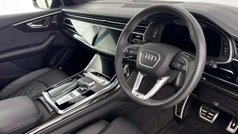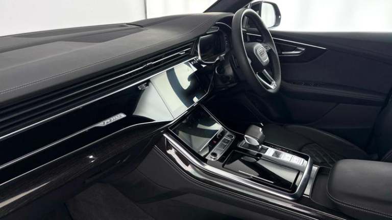 Experience flagship Audi luxury with this exceptional Audi Q8 Vorsprung 50 TDI quattro 286 PS Tiptronic (ULEZ), registration NV73WPR, with just 18,000 miles. With commanding road presence, quattro all-wheel drive confidence and refined V6 diesel performance, the Q8 delivers effortless pace, outstanding long-distance comfort and a truly premium driving environment. This example has had three previous owners and benefits from a full Audi Approved service history, most recently receiving an oil change service at 11,968 miles.As a Vorsprung model it comes superbly equipped, including striking 22 alloy wheels and a panoramic sunroof that floods the cabin with light. Comfort is assured for all passengers with heated front and rear seats, while every journey is made easier with a 360 degree camera, front and rear parking sensors and adaptive cruise control. The driver-focused cockpit features Audi Virtual Cockpit and a head-up display, complemented by satellite navigation, Bluetooth and seamless smartphone integration via Apple CarPlay and Android Auto.Buy with complete confidence from Mon Motors Cardiff Audi. This vehicle is Audi Approved Used and has passed over 150 meticulous checks by our Audi-trained technicians, ensuring it meets the highest preparation standards and is available for immediate delivery. You will also enjoy the full Audi Approved Used package, including a minimum 12-month Audi Warranty and 12 months Roadside Assistance. If the vehicle is under three years old it will also be covered by the balance of Audi s original 36-month manufacturer warranty (the remaining term being 36 months minus the vehicle s age); vehicles over three years come with a minimum 12-month warranty.As an official Audi franchise retailer, we offer expert product knowledge, manufacturer-trained technicians, transparent finance and part-exchange options, and the reassurance of approved standards throughout your purchase and aftersales care. Contact Mon Motors Cardiff Audi today to arrange your viewing or test drive. Intelligent park assist, Singleframe mask in Black, Cross-Traffic Assist Front, 360o?camera, Head-up-Display, Valcona Leather for Super Sport seats, Parking Assist with Parking aid plus, S line Exterior package, Multi-coloured Extended LED Interior Lighting Pack, Super Sport seats with 'S' embossed logo, Audi Music Interface with USB interface in the rear, 22 x 10.0J '5-parallel-spoke' design alloy wheels - in contrasting grey with gloss turned finish