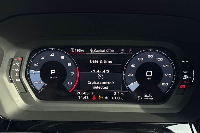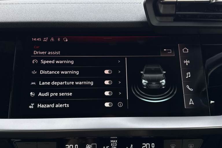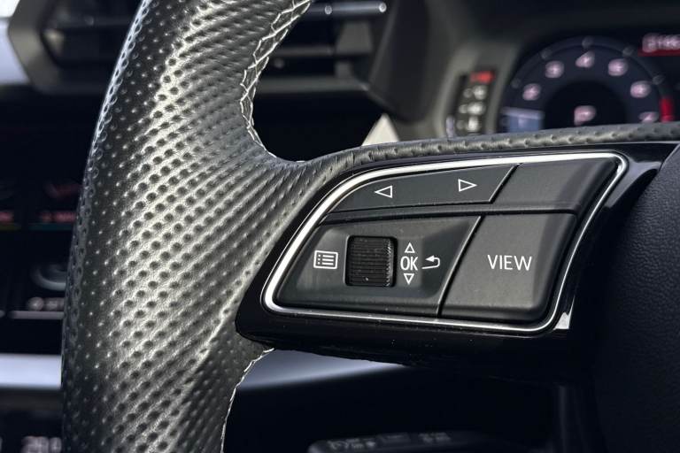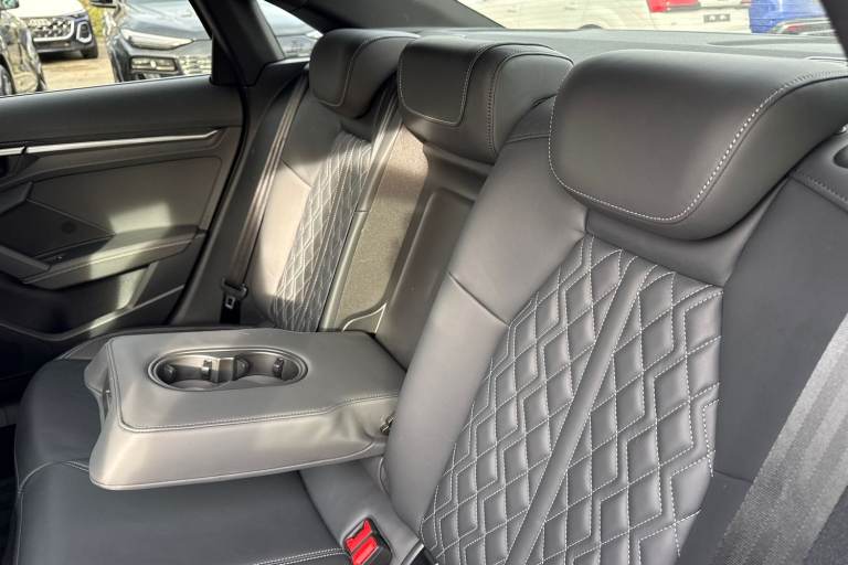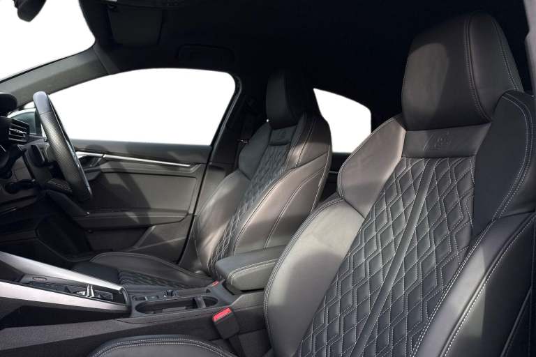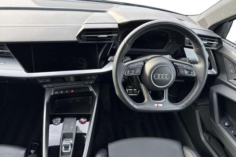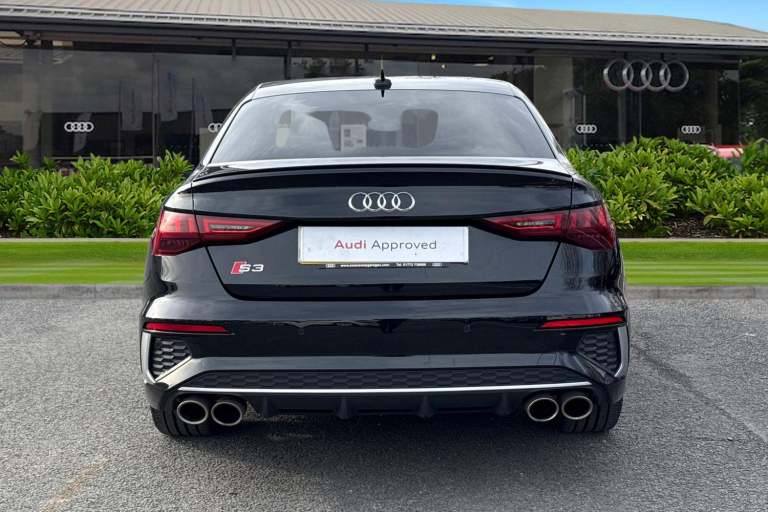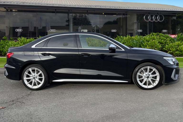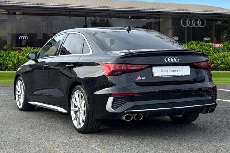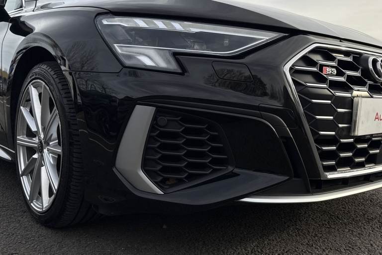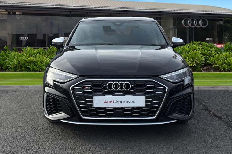 Defined in sleek Mythos Black metallic paintwork, this Approved Used Audi S3 Saloon TFSI 310 PS S tronic delivers an exceptional blend of performance, refinement and everyday usability. With its sharp saloon silhouette, sculpted body lines and unmistakable S detailing, the S3 offers a sophisticated yet aggressive presence on the road. At its heart is a potent 2.0-litre TFSI petrol engine producing 310 PS, paired with the smooth and responsive S tronic automatic transmission. Combined with Audis renowned quattro four-wheel drive system, this setup provides outstanding traction, rapid acceleration and precise handling in all conditions. The result is a saloon that feels just as confident on twisting roads as it does cruising on the motorway. The exterior is enhanced by striking LED headlights with front and rear dynamic indicators, giving the car a sharp, modern light signature. Large 18"" alloy wheels further emphasise its athletic stance, perfectly complementing the S3s performance-focused design. Inside, the cabin balances sportiness with premium comfort. Heated front seats ensure year-round driving enjoyment, while dual-zone climate control allows both driver and passenger to tailor their environment. Interior ambient lighting adds a refined, contemporary atmosphere, especially during night-time journeys. Practicality is supported by rear parking sensors, making manoeuvring in tighter spaces simple and stress-free. As an Approved Used Audi, this S3 Saloon has undergone...