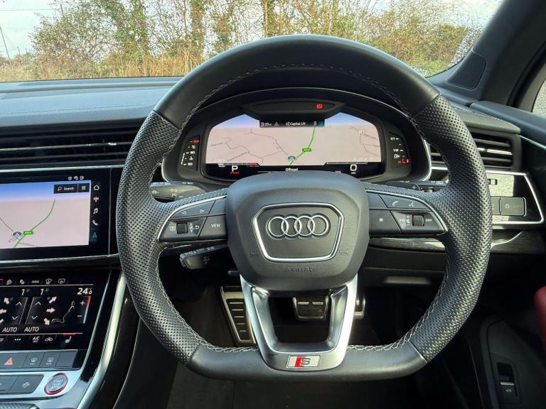7 Seats, Panoramic Glass Roof, Head Up Display, Virtual Cockpit, 3D Surround View Cameras, Touch Screen Sat Nav, Rear View Camera, Park Assist, Lane Departure Warning, Audi Drive Select, Climate Control, Cruise Control, Electric Heated Memory Seats with Lumbar, Heated Rear Seats, DAB Radio, Bang & Olufsen Sound, LED Matrix Headlamps, Park Distance Control, Secrecy Glass, Adjustable Air Siuspension, Multi Function Steering Wheel, Red Calipers and 22'' Alloys. Full Red Supersport Leather. Full Audi Service History. Balance of Manufactrers Warranty. [Website URL removed] All Cars are Subject to a 251 Admin Fee. This Data Does Not Form any Part of a Buying Contract. Our sales executive Jamie Walker can be reached Directly via Telephone as-well as WhatsApp Messaging by using the telephone no: [Phone number removed] to discuss part exchange valuations, purchase options & handover. Please call us to Confirm which of our Essex Showrooms your desired vehicle is located at before travelling to see us, Everyone of Our Cars Goes Through Our In House Work Shop Prior to Sale by Our Fully Qualified and Experienced Technicians - Buy with Confidence, Mileage Subject to Change as Stock Rotates Between Showrooms Confirm Mileage at Time of Purchase. For up to 40 images of this vehicle and an Instant Finance Quote please view [Website URL removed] or Contact Our In House Funding Specialist for a Personalised Quote, We are also good buyers of all prestige, Sports and 4x4 vehicles Especially those with Body Kit Styling Conversions by the likes of Kahn, Overfinch, Lumma, Hawke, Revere, Onyx, Aspire, Tank, Urban, Evolved, Exclusive, Stealth Pack, Ultimate Styling, Tech Art, Bespoke Bodykit etc so why not give us a call for a price on yours, Please Like us on Facebook and Follow us on Twitter and Instagram, Thank You, [Website URL removed]