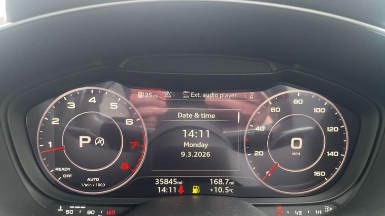 Full Service History, Audi Smartphone Interface, Chronos Grey, 12V Socket, Audi drive select, Bluetooth Mobile Telephone Preparation, Cruise Control, DAB Digital Radio, Light and Rain Sensor, MMI Radio, Progressive Steering, Rear Parking Sensors, Tyre Pressure Loss Indicator, Xenon Headlights with LED Daytime Running Lights, 19in Alloy Wheels - 5-Spoke Blade Style Black - Diamond Cut, Anti Theft Locking Wheel Bolts, Black Door Mirrors, Black Styling Package, Door Mirrors - Electrically Folding, Electric Windows - Front, Retractable Rear Spoiler, Tyre Repair Kit, Aluminium Door Sill Trims, Audi Virtual Cockpit, Auto-dimming rear-view mirror, Flat-Bottomed 3-Spoke Leather-Trimmed Multi-Function Sport Steering Wheel, Front Centre Armrest, Heated Front Seats, Inlays - Aluminium Design, Keyless Go, Manual Air Conditioning, Split-Folding Rear Seats, Tool Kit, Anti-Theft Alarm, ESC - Electronic Stabilisation Control inc ABS - EBD - ASR - EDL, Electromechanical Parking Brake, First Aid Kit and Warning Triangle, Front Airbags with Front Passenger Deactivation, Head Level Airbags, Hill Hold Assist, ISOFIX Child Seat Mounting for Front Passenger with Airbag Deactivation, ISOFIX Child Seat Mounting for Rear Seats