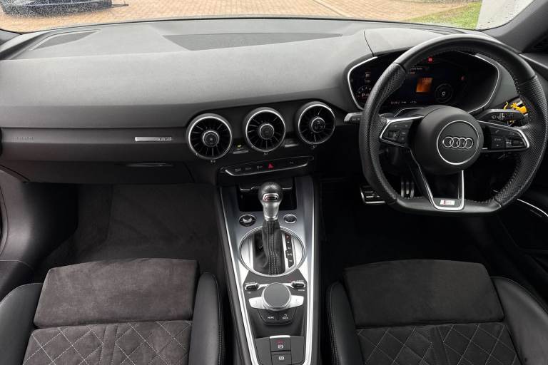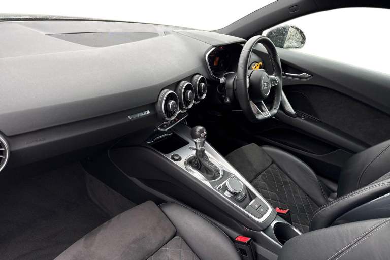 Bold, athletic and unmistakably Audi, this Approved Used Audi TT Black Edition 40 TFSI makes a powerful statement in Mythos Black Metallic, perfectly complementing its sleek and iconic coupe design. Under the bonnet, the responsive 40 TFSI petrol engine delivers strong performance and smooth acceleration, offering an engaging drive whether on winding roads or everyday journeys. The Black Edition specification enhances the TTs sporting character with distinctive styling details, giving it a purposeful and dynamic presence. The interior is equally impressive, combining premium materials with a driver-focused layout. Equipped with the Comfort & Sound Pack, this TT benefits from enhanced convenience features and an upgraded sound system, ensuring every journey is both relaxing and immersive. As an Audi Approved Used vehicle, it has been thoroughly inspected and prepared to Audis exacting standards, providing complete peace of mind along with manufacturer-backed reassurance. Striking design, rewarding performance and exceptional comfort come together in this Audi TT Black Edition, making it an outstanding choice for those seeking a refined yet sporty driving experience. This vehicle is compliant with Clean Air Zone (CAZ) or Ultra Low Emission Zone (ULEZ) regulations, meaning it produces low emissions and helps to improve air quality in our cities. We offer flexible finance packages* Terms & conditions apply. For further information or a finance quote please call our sales...