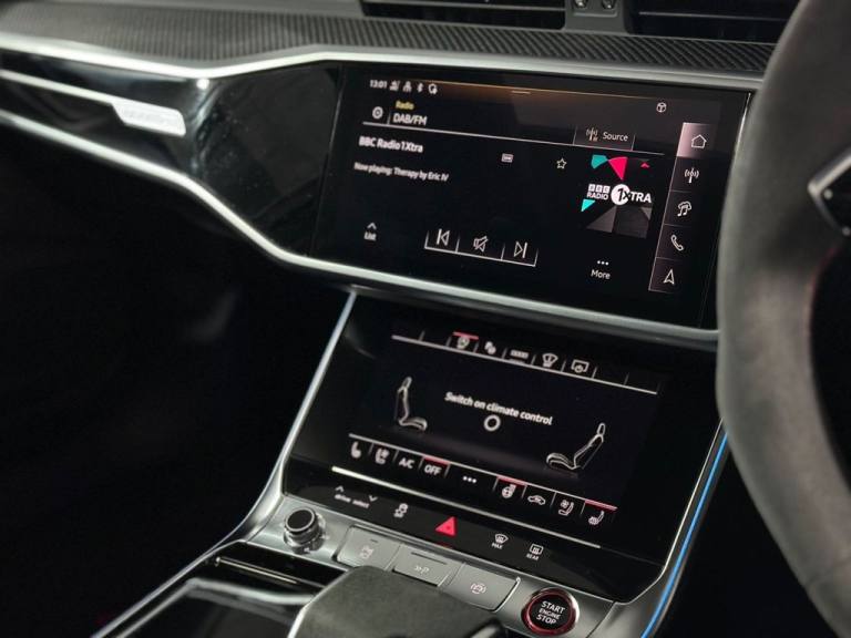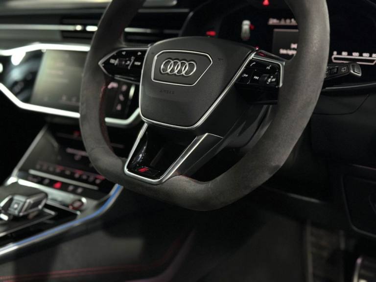 This 2024 Audi RS6 Avant TFSI V8 Performance Carbon Vorsprung boasts exceptionally low mileage for its age, having covered just 9000 miles. This highly sought after model features a powerful 4.0L V8 petrol engine paired with a sophisticated four wheel drive system, ensuring dynamic performance and assured handling in all conditions. As a Euro 6 compliant vehicle, it meets stringent emission standards. The Performance Carbon Vorsprung trim signifies a premium specification, offering a blend of advanced technology and luxurious appointments. Experience exhilarating acceleration with this RS6 Avant, capable of reaching 0-60mph in a remarkable 3.4 seconds. This impressive figure highlights its superior performance capabilities compared to many other vehicles in its class. The combination of its potent engine, advanced drivetrain, and low mileage makes this Audi RS6 Avant a truly exceptional proposition for those seeking a high performance estate car with outstanding credentials. Specification Includes: RS Steel Brakes with Brake Calipers in Red Gloss £520 Panoramic Roof Carbon Fibre Diffuser Carbon Fibre Splitter Carbon Fibre Side Skirts Carbon Fibre Wing Mirrors Carbon Fibre Interior Trim Bang & Olufsen Sound System 360 Camera Front and Rear Parking Sensors Satellite Navigation Apple CarPlay Front And Rear Heated Seats Night Vision Camera Audi Drive Select With RS Modes Valcona Leather with Perforated RS-Honeycomb and RS Lettering - Sport Seats - Black with Express Red Stitching Multi-Functional Steering Wheel .Mythos Black, RS Steel Brakes with Brake Calipers in Red Gloss, Valcona Leather with Perforated RS-Honeycomb and RS Lettering - Sport Seats - Black with Express Red Stitching, Inlays - Carbon Twill, 2 USB-C Ports with Charging Functionality in the Rear, 22in Alloy Wheels - 5 Y-Spoke - Matt Black, 4-Way Electric Lumbar Support, ABS - Anti-Lock Braking System, AMI - Audi Music Interface, Air Quality Pack, Ambient Lighting Package Plus, Anti-Theft Alarm with Tow-Away Protection, Audi Connect Navigation and Infotainment, Audi Connect Safety and Service - e-call, Audi Connect with Amazon Alexa Integration, Audi Drive Select with Two Configurable RS Modes, Audi Phone Box Light, Audi Pre-Sense Basic, Audi Pre-Sense Front, Audi Smartphone Interface including Application Store - Includes Wireless Apple CarPlay - Android Auto and Amazon Alexa Intergration, Audi Virtual Cockpit Plus with RS Specific Design and 12.3in Display, Auto Dimming and Frameless Rear View Mirror, Bang and Olufsen Premium Sound System with 3D Sound, Black Dinamica Headlining, Black Roof Rails, Bluetooth Interface, Camera Based Traffic Sign Recognition, City Assist Pack, DAB Digital Radio, Deluxe 4-Zone Automatic Climate Control, Direct Tyre Pressure Monitoring System, Door Sill Trims with Aluminium Inlays - Front and Rear - Illuminated - Front with RS6 Logo, Dynamic All-Wheel Steering, Electric Steering Column Adjustment, Electric Windows - Front and Rear, Electrically Adjustable Front Seats with Memory Function for Drivers Side, Electromechanical Parking Brake, Entry LED with RS Performance Projection - Front and Rear - Audi Beam, Extended Pedestrian Protection Measures, Exterior Mirrors - Electrically Folding - Adjustable and Heated with Memory Function - Integrated LED Side Indicators and Kerb View Function for Passenger Side, First Aid Kit and Warning Triangle, Front Centre Armrest, Front Floor Mats with Coloured RS Logo and Rear Floor Mats, HD Matrix LED Headlamps with Audi Laser Light with Dynamic Light Design and Dynamic Turn Signal, Head-Up Display, Headlight Washers, Heated Front and Rear Seats, ISOFIX Child Seat Mounting and Top Tether - Front Passenger Airbag Deactivation, ISOFIX and Top Tether Child Seat Mountings for the Outer Rear Seats, Inlays - Carbon Twill with Blue Accent, Keyless Go, LED Rear Combination Lamps with Dynamic Light Design and Dynamic Turn Signal, Lane Departure Warning, MMI Navigation with MMI Touch, Matt Carbon Black Styling Package, Mirror Housing - Matt Carbo