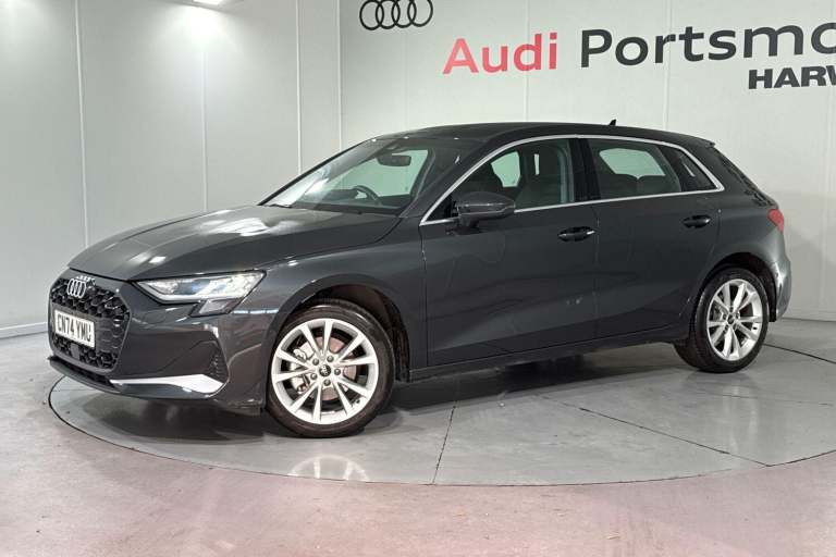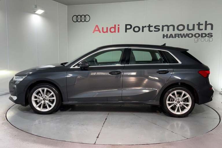 SATELLITE NAVIGATION, MULTI FUNCTION STEERING WHEEL, HILL HOLD ASSIST, CRUISE CONTROL, AUDI VIRTUAL COCKPIT, LANE DEPARTURE WARNING, WIRELESS PHONE CHARGER, APPLE CARPLAY, ANDROID AUTO, DAB RADIO, PARKING SENSORS, SPLIT FOLDING REAR SEATS, LIGHT & RAIN SENSOR, AUTO DIMMING REAR VIEW MIRROR, SELECTABLE DRIVING MODES, PUSH BUTTON START, MANHATTAN GREY METALLIC WITH FABRIC UPHOLSTERY, 18'' ALLOY WHEELS, DUAL ZONE CLIMATE CONTROL, HEATED FRONT SEATS WITH LUMBAR SUPPORT, VOICE ACTIVATED CONTROLS AND MUCH MORE.All Audi Approved used cars are offered with a 12-month warranty and roadside assistance.This car comes with the balance of the manufacturers warranty.Portsmouth Audi are delighted to offer this Audi A3 in Manhattan grey over Fabric and has completed just 4821 miles., We are proud to be part of the Harwoods group, a family run business established in 1931. With four Approved Audi retailers within our group, we have access to over 400 vehicles. If this isn't the right car for you, please contact us and we will find it. Our group stock has spec to include Sunroof, Leather, Heated Seats, Apple Car Play, Heated Steering Wheel, Reverse Camera, Rear Entertainment, Towbar, 360-degree camera, Comfort & Sound Pack, Tech Pack, Panoramic Sun Roof, Tow Bar, Black Pack, Air Suspension, Apple Carplay, Adaptive Cruise, Massage Seats, Refrigerator, AWD, Technology Pack, Head up Display, Vorsprung, Technik, Black Edition, S-Line, S Line, Edition 1, TFSI, Quattro, Sportback, LWB. Other colour options including Black, Blue, Green, Silver, White, Red, Grey, Yellow, Orange. Interior options of Ebony, Black, Ivory, White, Tan, Cream, Oyster, & Euro 6 ULEZ compliant drive trains.