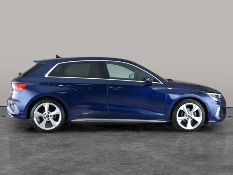 Experience premium driving in this stylish blue Audi A3 Sportback. Enjoy seamless navigation with MMI Navigation Plus and stay connected on the go with Apple CarPlay and built-in WiFi. Drive comfortably with luxurious leather, S line embossed front sport seats, and advanced Adaptive Cruise Control. LED headlights and traffic sign recognition make every journey safe and effortless. The digital instrument cluster, lane departure warning, and Bluetooth audio streaming add to a superbly refined ride. This vehicle has previously been registered to a business or a vehicle rental company, or been used by a business, so it may have been driven by more than one driver. 2 services recorded, last serviced on 09/12/2025 at 22,496 miles. MOT to 08/02/2027. Visit our website for service history, online valuation, full vehicle specification plus multiple images. Certain features listed may be available via subscription packages at extra costs, please consult with Audi for details. This vehicle is VAT qualifying. Any feature/option specified here is from 3rd party data. We cannot guarantee the accuracy of any specification supplied by a 3rd party. We recommend that you physically check the specification of the vehicle on site prior to purchase. This information does not form part of the buying contract. Terms & Conditions apply. We have over 2,000 cars available from our 10 national branches, check our website to see all our stock. Our Trustpilot rating is 4.4/5 with over 9,000 reviews.