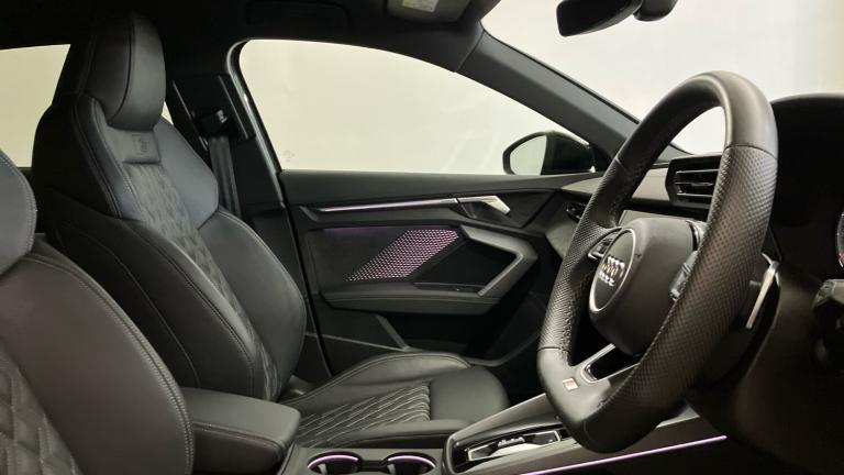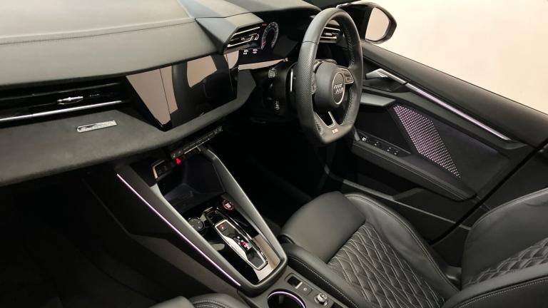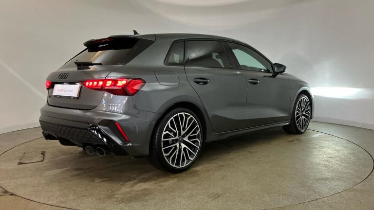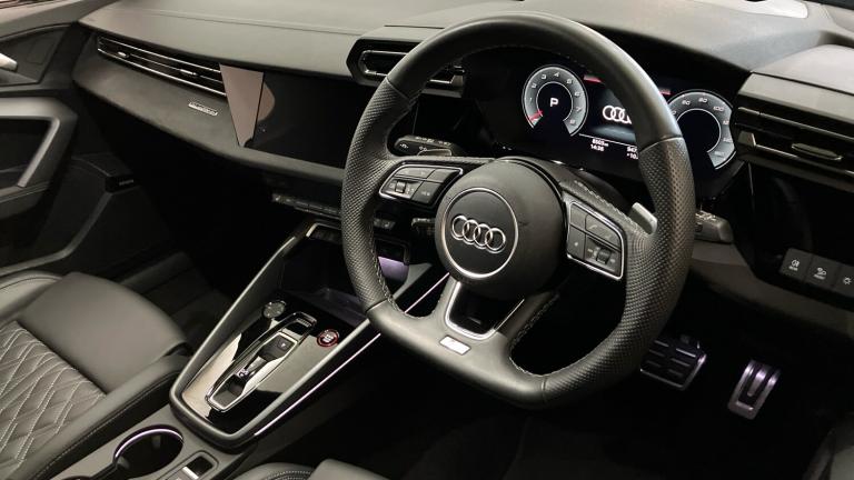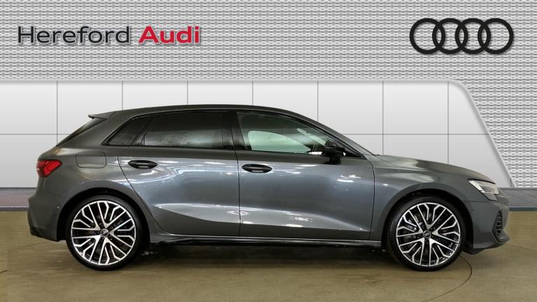 ***AUDI APPROVED USED***We are delighted to offer this outstanding 2024 Audi S3 Sportback Black Edition, finished in the ever-popular Daytona Grey Pearl Effect. Powered by Audi’s latest 2.0 TFSI engine producing an impressive 333 PS, this S3 delivers exhilarating performance while remaining perfectly suited to everyday driving. The renowned quattro four-wheel drive system provides exceptional grip and confidence in all conditions, seamlessly paired with the slick S tronic automatic gearbox for rapid, effortless gear changes.Supplied new by us, this example was specified with the striking Black Styling Package, giving the car a purposeful and athletic presence that perfectly complements its performance credentials. Inside and out, the S3 showcases Audi’s trademark build quality, refinement and cutting-edge technology.This vehicle has been meticulously maintained with a full Audi service history, offering complete peace of mind to the next owner. A superb opportunity to acquire a high-performance hot hatch that combines everyday usability with genuine driving excitement..Air Conditioning, Climate Control, Metallic Paint, Cruise Control, Satellite Navigation, Alloy Wheels, Leather Seats, Heated Seats, DAB Radio, Bluetooth, Parking Sensors, Stop Start, Full Service History, USB, Manufacturer Approved, Apple-Android Play, Rear Camera, Auto Lights, Pre Crash Prevention, Rain Sensors& 4x4, Black front and rear floor mats, Rear wiper, Rear electric windows, Front electric windows, Heat insulating glass windscreen, Privacy glass - dark tinted rear window, rear door and side windows, Electronic Stabilisation Control (ESC) including ABS, ASR and EDL, S sport suspension with spring damper adjustment and lowering by 15mm, Bluetooth interface, Voice control system with natural language interaction, Audi smartphone interface with app store includes wireless Apple carplay, Android auto and Amazon alexa integration, Lane departure warning system, Hill hold assist, Audi drive select, Adjustable speed limiter, Camera based traffic sign recognition