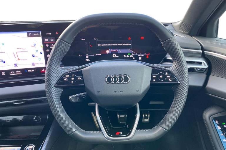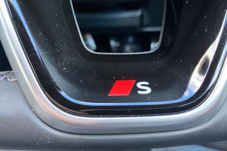..Adaptive cruise control, Advanced driver attention and fatigue montior, Audi application store, Audi assistant, Audi connect emergency call and service, Audi drive select, Audi smartphone interface, Audi virtual cockpit plus with 11.9'' OLED colour display, Automatic start/stop system with coasting functionality, Camera based traffic sign recognition, Intersection assist, Lane departure warning, MMI navigation plus with high resolution 14.5'' OLED touchscreen colour display, Park assist plus, Parking system plus with 360 display, Progressive steering with servotronic, Rear view camera, Swerve assist and turn assist, Traffic sign based speed limiter, Sports suspension lowered by 20mm, 2 USB-C ports in both the front and rear, Audi sound system impressive sound with 10 loudspeakers including centre speaker and subwoofer, 6-channel amplifier with a total output of 180 watts, DAB digital radio reception, Smartphone compartment with wireless charging, Aluminium window trims, Auto dimming rear view mirror, Body colour door mirrors, Door mirrors - electrically adjustable, heated, folding and auto dimming on both sides, Front and rear electric windows, Front door sill trims with aluminium inlays, illuminated with 'S' logo, High beam assist, LED headlights Plus incl. digital daytime running lights, turning light, all-weather light, motorway light, manouevring light and intersection light, LED rear lights pro incl. dynamic rear indicators and illuminated light strip with animated coming and leaving home function, LED third brake light, Privacy glass, Rear and side windows with heat insulating glass, Rear boot, Rear side wing doors, Red S line rhombus badging on rear, S line bumpers, radiator grille and diffuser in phantom black and diffuser insert in matt anthracite, White rhombus logo projection light in exterior mirrors, Windscreen with acoustic glazing, 3 rear headrests, 3 seat rear bench, 3 spoke leather steering wheel with multi-function buttons with touch control, flattened on top and bottom, with S badging and contrast stitching, 3-zone automatic climate control, 40:20:40 split folding rear seat bench with centre armrest and cup holders, Comfort front centre armrest, Front and rear floor mats, Front seats with manual adjustment for position and 4-way electric lumbar support, Front sport seats with integrated headrest and S embossed logo, Headlining in black cloth, Heated front seats, i-Size child seat mounting on the front passenger side and outer rear