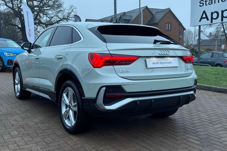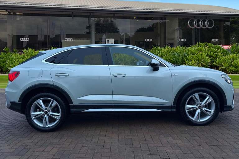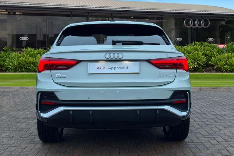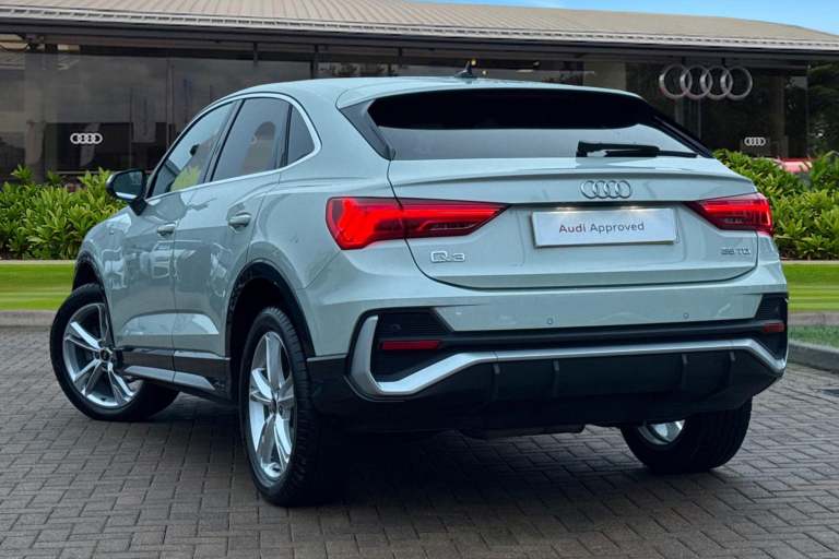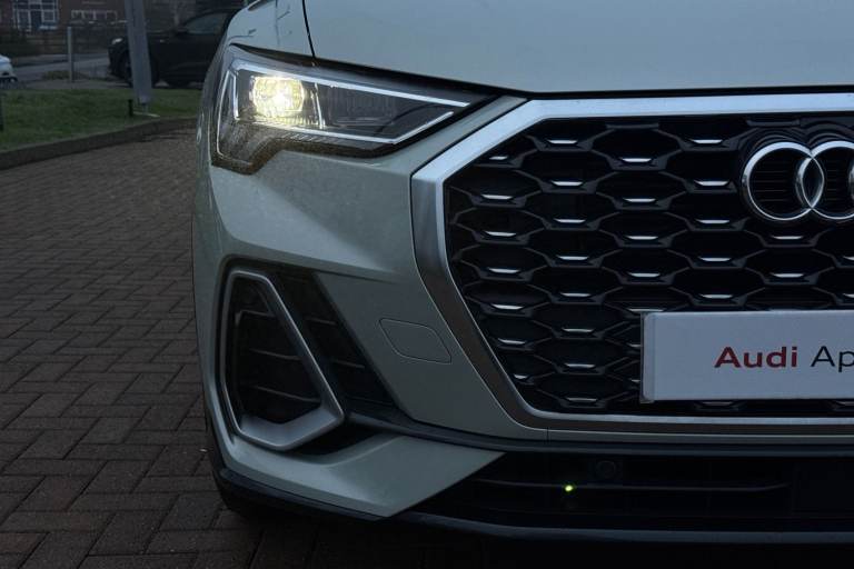Turn heads wherever you go with this Audi Approved Used Audi Q3 Sportback S line 35 TDI, finished in the refined Dew Silver metallic. The S line styling enhances the Q3 Sportbacks dynamic appearance, featuring distinctive exterior detailing, striking alloy wheels and a confident coupe-inspired silhouette. The elevated driving position provides excellent visibility, while the Sportback design retains the practicality required for everyday use. Inside, the cabin reflects Audis renowned craftsmanship, with S line sports seats, premium materials and a sleek digital cockpit designed around the driver. Powered by the efficient 35 TDI diesel engine, this Q3 Sportback delivers responsive performance alongside impressive fuel economy, making it ideal for both longer journeys and daily driving. The smooth automatic transmission ensures relaxed, effortless progress, while Audis advanced safety and driver assistance systems offer reassurance on every journey. As part of the Audi Approved Used programme, this vehicle has undergone a comprehensive multi-point inspection and comes with a minimum 12-month warranty and roadside assistance for added peace of mind. Combining sporty design, premium comfort and everyday versatility, this Audi Q3 Sportback S line is an excellent choice in the compact SUV segment. This vehicle is compliant with Clean Air Zone (CAZ) or Ultra Low Emission Zone (ULEZ) regulations, meaning it produces low emissions and helps to improve air quality in our citie...