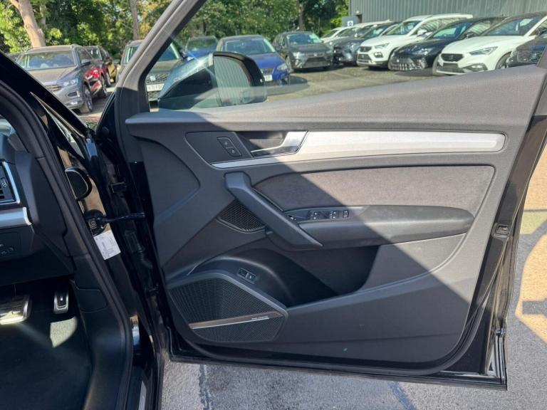 This 2024 Audi Q5 TDI S line offers a unique opportunity as it has had only one owner from new. This premium SUV is equipped with a powerful 2.0 litre diesel engine and a four wheel drive system, ensuring excellent performance and grip in all conditions. As a Euro 6 compliant vehicle, it meets stringent emission standards. The Q5 TDI S line boasts a generous boot space, perfect for luggage or shopping. Notable features include a reversing camera with parking assistance, the Audi Wireless Smartphone Interface for seamless connectivity with Android Auto and Apple CarPlay, and deluxe 3 zone electronic climate control for personalised comfort. Enjoy the convenience of heated front seats and the advanced illumination of LED headlights with LED tail lights.The Audi Q5 TDI S line delivers an impressive 0 to 62 miles per hour acceleration in just 7.6 seconds, showcasing its dynamic capabilities. This performance, combined with its sophisticated features and the assurance of a single owner, positions it favourably against other vehicles in its class. Furthermore, its substantial towing weight of 2400 kg makes it a versatile choice for those needing to tow caravans or trailers.