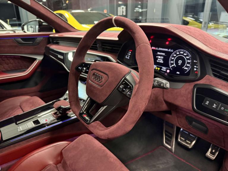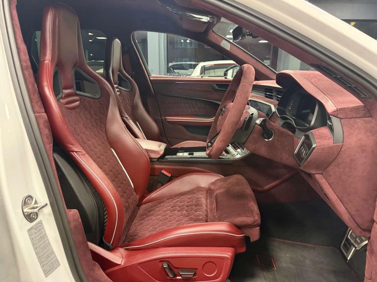 A true one-of-one! This Audi RS6 Performance has been extensively and tastefully reimagined by Urban Automotive, creating a full bespoke build that fusses aggression, exclusivity and craftsmanship. From it's 4x4 twill carbon aero kit (finished in satin lacquer) to it's cricket ball red interior with recaro carbon seats, this RS6 stand in a class of its own. Along with 22"" Vossen Alloys, custom coloured brake calipers to match interior there, Deutsche tech performance exhaust cat-back system, interior trims finished in satin matt black by a specialist refinisher in Netherland.The Audi 4.0 RS 6 Performance TFSI MHEV Quattro – a masterpiece of engineering and design that redefines luxury and performance. With only 2060 miles on the clock and meticulously cared for by just two previous owners, this exquisite vehicle is practically brand new and ready to deliver an unparalleled driving experience.Finished in a pristine white, the Audi RS6 exudes sophistication and elegance, making a bold statement on the road. Its sleek lines and dynamic contours are complemented by the iconic Quattro all-wheel-drive system, ensuring superior handling and stability in all conditions.Under the bonnet lies a powerful 4.0-litre TFSI engine, paired with a mild hybrid electric vehicle (MHEV) system, delivering an exhilarating performance that will leave you breathless. The Audi RS6 is not just about power; it’s about precision, with advanced technology and engineering that provide a smooth and responsive drive.Step inside the luxurious cabin, where premium materials and cutting-edge technology create an environment of comfort and convenience. From the intuitive infotainment system to the plush seating, every detail has been crafted to enhance your driving pleasure.Don’t miss the opportunity to own this exceptional Audi RS6. It’s more than just a car; it’s a statement of style and performance. Visit us today to experience the thrill of driving an Audi RS6 and make it yours. Your journey towards luxury and performance begins here.