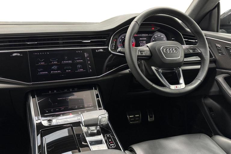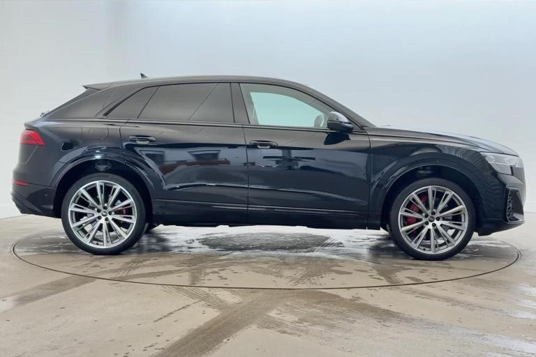 Check out this Audi Approved SQ8 SUV Vorsprung TFSI in Mythos Black with its 23"" 10-spoke trapezoidal alloy wheels which look stunning out on the roads. The HD Matrix LED headlights with Digital OLED rear lights create that strong visibility in all weather conditions. This SQ8 comes fitted with some brilliant features, such as the 360 degree camera which maximises vision and assists greatly in all maneuvering situations. The panoramic glass sunroof floods the cabin with light and is perfect for those sunny days. Another great feature, is the heated front and rear seats which are fantastic for those chilly mornings. The Bang and Olufsen 3D premium sound system, creates that excellent sound experience. Further enhancing safety and convenience, is the Head-up display which allows the driver to keep their eyes on the roads. ISOFIX child seat mounts are fitted to the front passenger and rear seats of this SQ8, making it the perfect vehicle for the whole family to enjoy. There are USB ports with charging function in the first and second seat row, allowing passengers to charge any compatible accessories, with ease. the multimedia interface allows the driver and front passenger to access different media, such as Apple Carplay and Android Auto, giving you access to apps like Spotify, Google Maps, Apple Music and other apps also. The Audi drive select feature lets you choose your prefered drive mode on an...