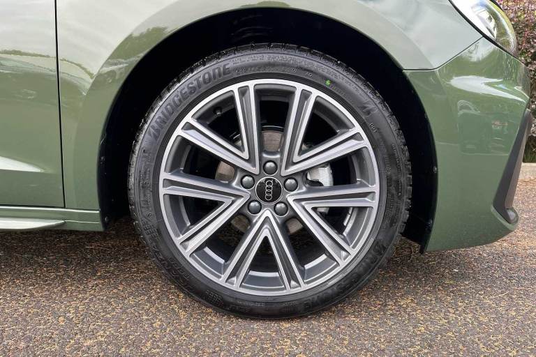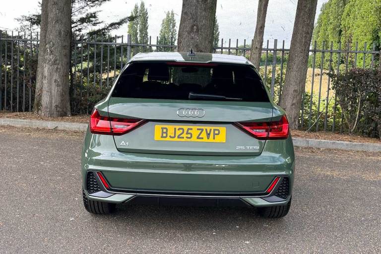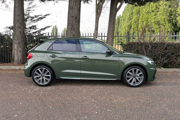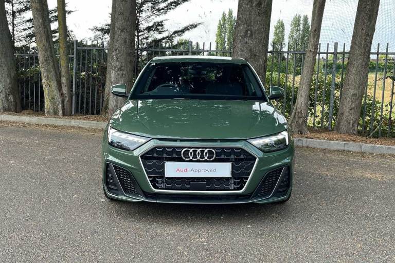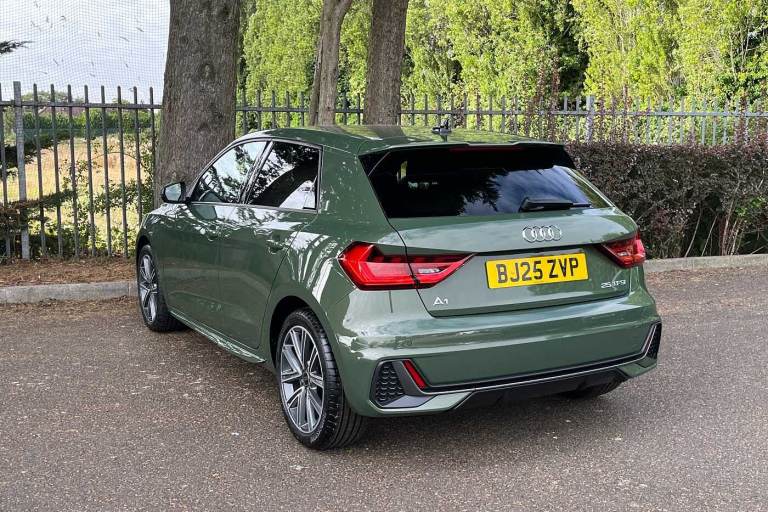 Available from 05/11/2025. Audi A1 Sportback 25 TFSI S Line 5dr in District green, metallic. Specification Includes Operating permit, alteration,Reversing camera,Technology Pack,Internal control code,Heated front seats,Parking System Plus,SONOS 3D premium sound system,Audi Phone Box,Equipment options subset for Great Britain.