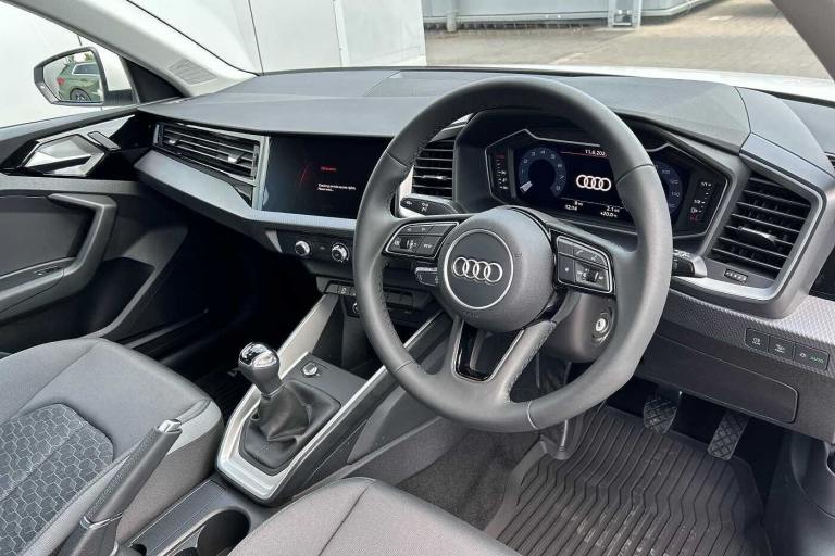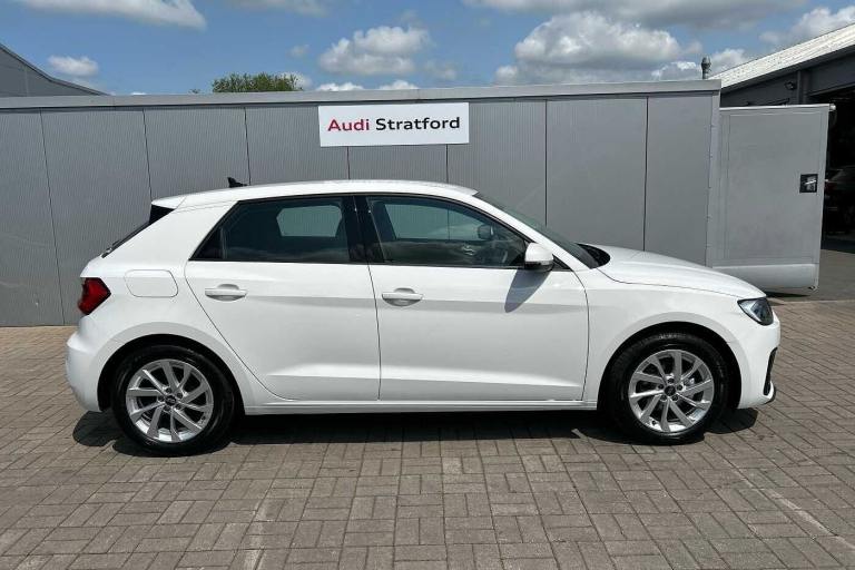 Available from 04/09/2025. Audi A1 Sportback 25 TFSI Sport 5dr in Shell white, solid. Specification Includes Equipment options subset for Great Britain,16in x 6.5J '10-spoke turbine' design alloy wheels with 195/55 R16 tyres,Manual air conditioning,Interior lighting,DAB radio,Front Sport Seats,Hill hold assist,Audi smartphone interface,3-spoke leather multi-function steering wheel,Auto-dimming rear-view mirror,Door mirrors, folding,Tyre pressure loss indicator,Preparation for MMI navigation plus,Rear parking sensors,LED headlights,Separate daytime running light,Light and rain sensors,Cruise control with speed limiter,LED rear lights with dynamic indicators,10.25in Digital cockpit,Bluetooth Interface.