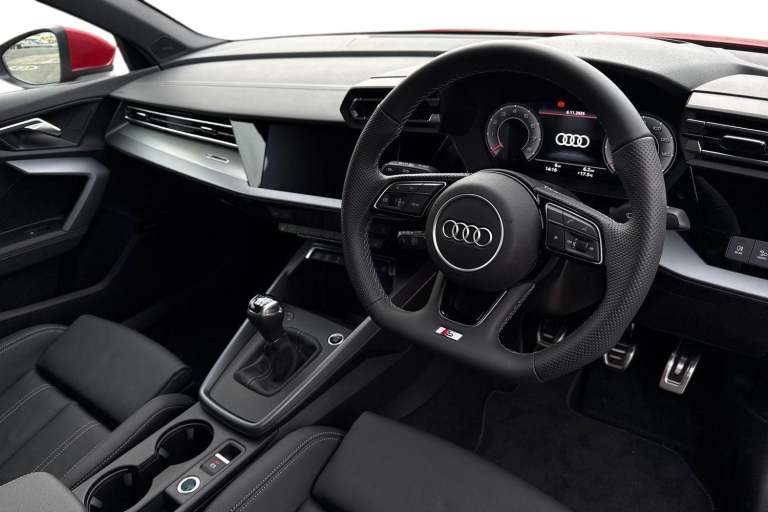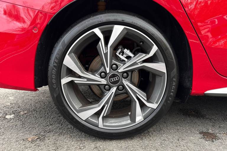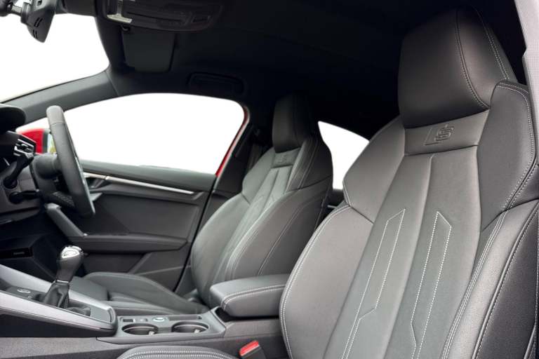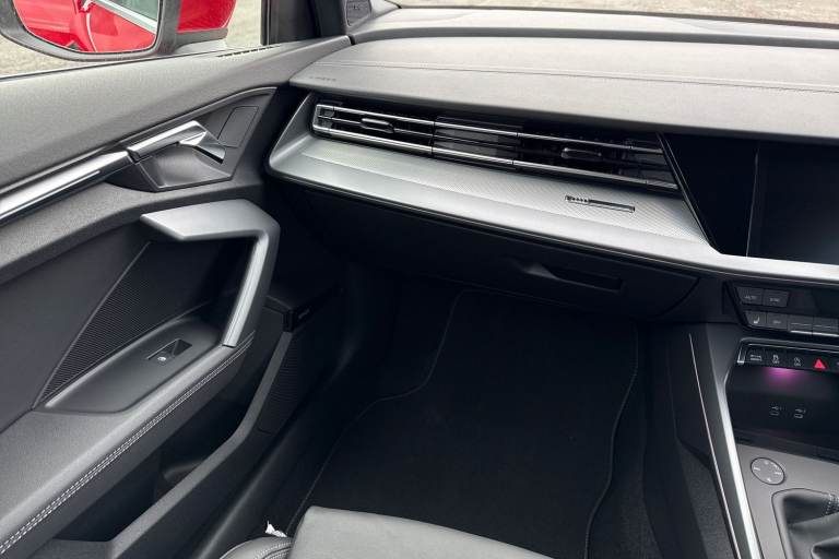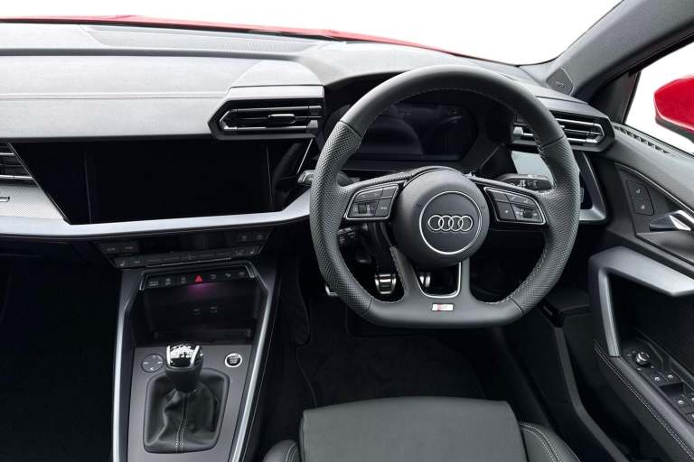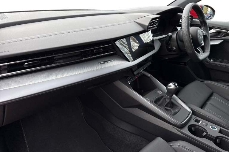 Be the centre of attention with this facelifted Brand New A3 Sportback, presented here in the S Line specification and finished in the bold Progressive Red paintwork. The smooth 150ps 30 TFSI engine and slick manual gearbox delivers an impressive blend of performance with efficiency, while the nimble handling ensures theres an engaging drive. It certainly makes a statement with large 18"" alloy wheel, striking LED headlights, rear privacy glass, and the Black Styling Pack, giving this a menacing overall look. Inside, theres heated front sport seats upholstered in Twin Leather, a flat-bottomed 3-spoke leather multifunction steering wheel, multicoloured ambient lighting, and black impressum woven textile inlays, adding to the high quality interior look and feel. Tech wise, theres the slick 10.25"" Virtual Cockpit with various display options, the Phone Box with Wireless Charging, as well as the 10.1"" MMI Navigation Plus screen with Bluetooth, DAB digital radio, Sat Nav and Wireless Smartphone Interface with Apple Carplay & Android Auto, so you can easily stream your favourite content or navigate to your preferred destination. Theres also the included Technology Pack, adding the SONOS Sound System, Head-Up Display, Adaptive Cruise Control, as well as the Rear Camera, so theres plenty of technology to set this apart from the standard model. This vehicle is compliant with Clean Air Zone (CAZ) or Ultra Low Emission Zone (ULEZ) regulations, meaning it produces low emissions...