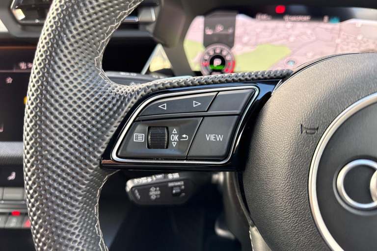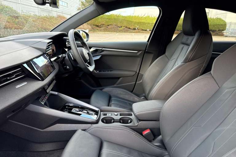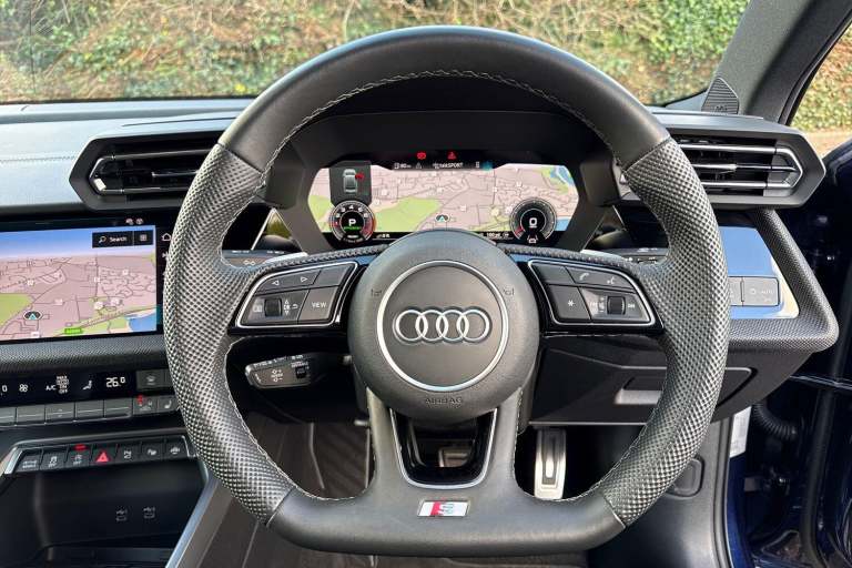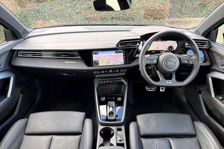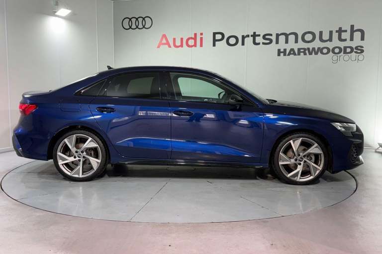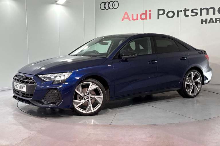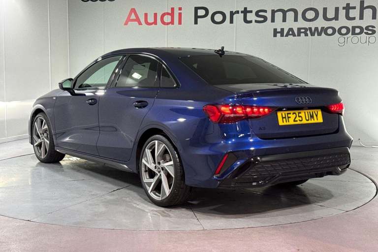 TECHNOLOGY PACK ( ADAPTIVE CRUISE CONTROL, HEAD UP DISPLAY, SONOS SOUND SYSTEM, HEAT INSULTING GLASS ) SPORTS SUSPENSION, BLACK EDITION PACK, STORAGE & LUGGAGE PACK, SATELLITE NAVIGATION, REAR PARKING CAMERA, MULTI FUNCTION STEERING WHEEL, HILL HOLD ASSIST, AUDI VIRTUAL COCKPIT, LANE DEPARTURE WARNING, WIRELESS PHONE CHARGER, APPLE CARPLAY, ANDROID AUTO, DAB RADIO, TINTED WINDOWS - PRIVACY GLASS, FRONT AND REAR PARKING SENSORS, SPLIT FOLDING REAR SEATS, LIGHT & RAIN SENSOR, AUTO DIMMING REAR VIEW MIRROR, SELECTABLE DRIVING MODES, PUSH BUTTON START, NAVARRA BLUE METALLIC WITH LEATHER UPHOLSTERY, 19'' 5 Y ARM DIAMOND CUT ALLOY WHEELS, DUAL ZONE CLIMATE CONTROL, LUMBAR SUPPORT, LED HEADLIGHTS WITH DYNAMIC REAR INDICATORS, VOICE ACTIVATED CONTROLS AND MUCH MORE.All Audi Approved used cars are offered with a 12-month warranty and roadside assistance.This car comes with the balance of the manufacturers warranty until 08/6/2028.Portsmouth Audi are delighted to offer this Audi A3 in Navarra blue over Leather and has completed just 5338 miles., We are proud to be part of the Harwoods group, a family run business established in 1931. With four Approved Audi retailers within our group, we have access to over 400 vehicles. If this isn't the right car for you, please contact us and we will find it. Our group stock has spec to include Sunroof, Leather, Heated Seats, Apple Car Play, Heated Steering Wheel, Reverse Camera, Rear Entertainment, Towbar, 360-degree camera, Comfort & Sound Pack, Tech Pack, Panoramic Sun Roof, Tow Bar, Black Pack, Air Suspension, Apple Carplay, Adaptive Cruise, Massage Seats, Refrigerator, AWD, Technology Pack, Head up Display, Vorsprung, Technik, Black Edition, S-Line, S Line, Edition 1, TFSI, Quattro, Sportback, LWB. Other colour options including Black, Blue, Green, Silver, White, Red, Grey, Yellow, Orange. Interior options of Ebony, Black, Ivory, White, Tan, Cream, Oyster, & Euro 6 ULEZ compliant drive trains.