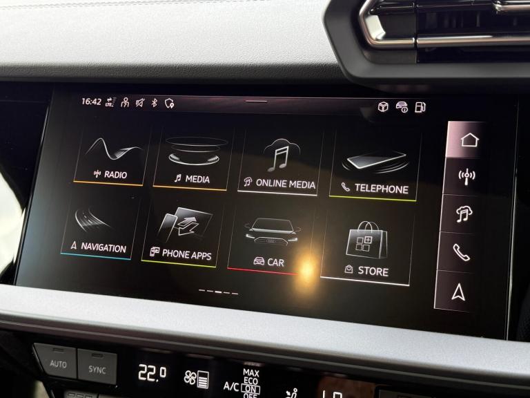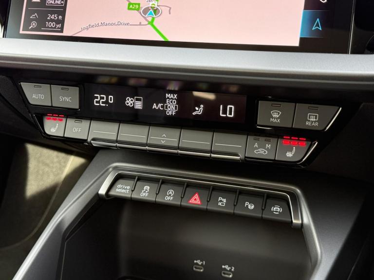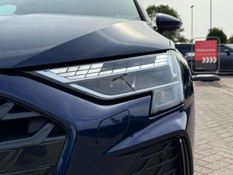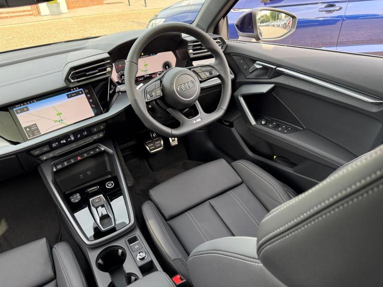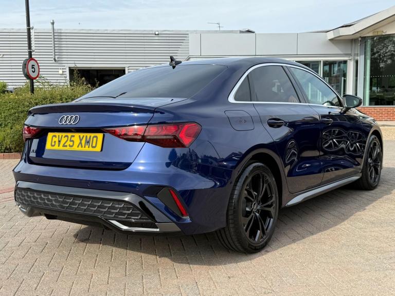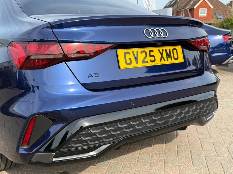 SATELLITE NAVIGATION, MMI TOUCHSCREEN, AUDI VIRTUAL COCKPIT, HEAD UP DISPLAY, BLUETOOTH CONNECTIVITY, DAB RADIO, WIRELESS SMARTPHONE INTERFACE WITH APPLE CARPLAY AND ANDROID AUTO, VOICE CONTROL, SONOS PREMIUM SOUND SYSTEM, DUAL ZONE CLIMATE CONTROL, BLACK TWIN LEATHER UPHOLSTERY, HEATED FRONT SEATS, 40/20/40 SPLIT FOLDING REAR SEATS, FLAT BOTTOM LEATHER STEERING WHEEL, AUDI PHONE BOX WITH WIRELESS CHARGING, AUDI DRIVE SELECT, TECHNOLOGY PACK, PANORAMIC SUNROOF, LED HEADLIGHTS, PRIVACY GLASS, HEAT INSULATING GLASS, ELECTRICALLY FOLDING/HEATED WING MIRRORS, FRONT AND REAR PARKING SENSORS, REVERSING CAMERA, ADAPTIVE CRUISE CONTROL, LANE DEPARTURE WARNING, AUDI PRE SENSE, TRAFFIC SIGN RECOGNITION CAMERA, EMERGENCY SOS, EURO 6, ULEZ.This car comes with the balance of the manufacturers warranty until 25/08/2028.Five Oaks Audi are delighted to offer this 2025 Audi A3 Saloon S line 35 TFSI 150 PS S tronic in Navarra Blue over Black Twin Leather and has completed just 2,565 miles. We are proud to be part of the Harwoods group, a family run business established in 1931. With four Approved Audi retailers within our group, we have access to over 400 vehicles. If this isn't the right car for you, please contact us and we will find it.If this isn't the right car for you our Group stock has specification to include Sunroof, Leather, Heated Seats, Apple Car Play, Heated Steering Wheel, Reverse Camera, Rear Entertainment, Deployable Towbar, 360-degree camera, Comfort & Sound Pack, Tech Pack, Panoramic Sun Roof, Tow Bar, Black Pack, Air Suspension, Apple Carplay, Adaptive Cruise, Massage Seats, Refrigerator, AWD, Technology Pack, Head up Display, Vorsprung, Technik, Black Edition, S-Line, S Line, Edition 1, TFSI, Quattro, Sportback, LWB. Other colour options including Black, Blue, Green, Silver, White, Red, Grey, Yellow, Orange. Interior options of Ebony, Black, Ivory, White, Tan, Cream, Oyster, & Euro 6 ULEZ compliant drive trains.