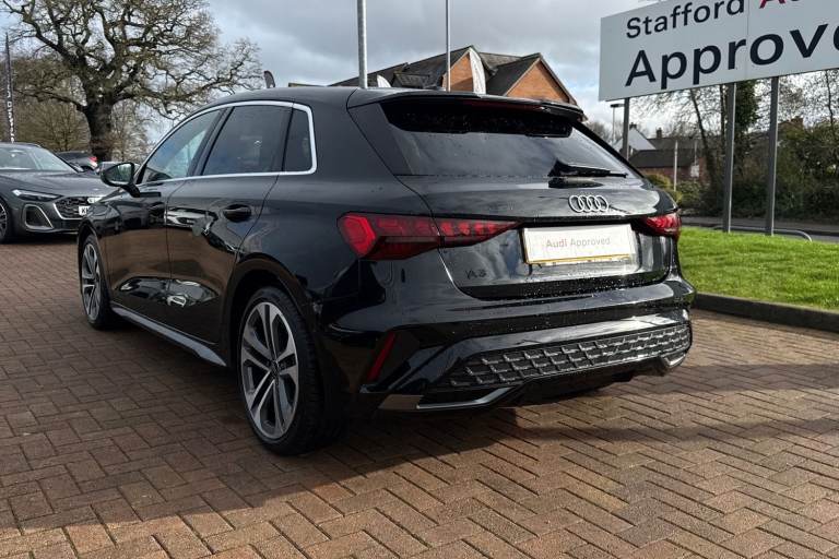 Finished in sleek Mythos Black Metallic, this Approved Used Audi A3 Sportback S line 35 TDI delivers sharp styling, refined performance, and everyday practicality. The S line exterior enhances its sporty appeal with distinctive bumpers, larger alloy wheels, and dynamic detailing that give the A3 a confident, athletic stance. The 35 TDI diesel engine provides strong performance with excellent efficiency, making it an ideal choice for both city driving and longer motorway journeys. Smooth power delivery and a composed ride ensure a comfortable and engaging driving experience in all conditions. Inside, the S line interior reflects Audis renowned craftsmanship, featuring premium materials, supportive sports seats, and a driver-focused cockpit. Advanced infotainment and connectivity systems keep you seamlessly connected, while the Sportback body style offers impressive rear passenger space and a practical luggage area. As an Audi Approved Used vehicle, it has been thoroughly inspected to meet Audis exacting standards, offering peace of mind alongside outstanding reliability, safety, and build quality. Stylish, efficient, and versatile, this Audi A3 Sportback S line is a superb hatchback for drivers seeking premium design with everyday usability. This vehicle is compliant with Clean Air Zone (CAZ) or Ultra Low Emission Zone (ULEZ) regulations, meaning it produces low emissions and helps to improve air quality in our cities. We offer flexible finance packages* Terms & condi...