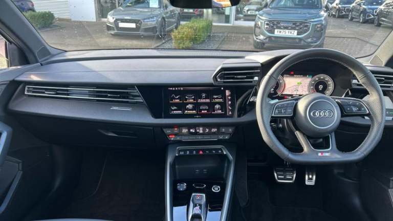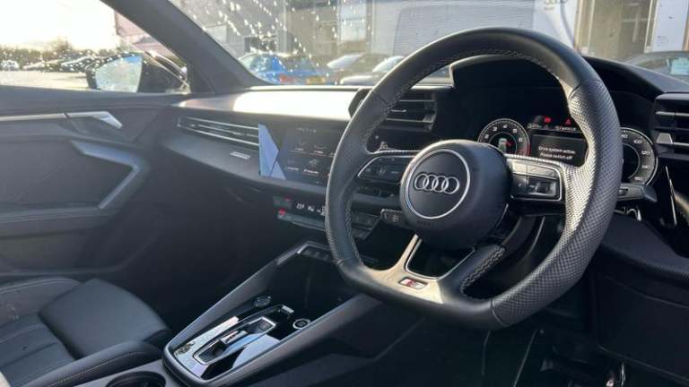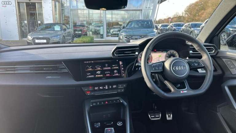 Discover premium Audi style and everyday practicality with this Audi A3 Sportback Black Edition 35 TFSI 150 PS S tronic (ULEZ compliant), registration KM25LJN, with just 6,242 miles. With its sharp Black Edition styling and smooth automatic S tronic gearbox, this A3 delivers an engaging drive with the comfort and refinement you d expect from Audi.This example has had one previous owner and benefits from full dealership Audi Approved service history, giving you complete confidence in its provenance and maintenance. Inside, the driver-focused cabin is packed with technology, including Audi Virtual Cockpit for a crystal-clear digital display, plus satellite navigation to keep every journey effortless. Parking is made simple thanks to front and rear parking sensors, while cruise control helps take the strain out of longer motorway trips.Stay connected wherever you go with Bluetooth, Apple CarPlay and Android Auto, allowing you to access calls, music, messages and your favourite apps seamlessly through the infotainment system. Completing the Black Edition look are striking 19 alloy wheels that give the A3 a purposeful stance on the road.Buy from Mon Motors Bath Audi and you ll enjoy all the reassurance of the Audi Approved Used scheme, including a minimum 12-month Audi Warranty and 12 months Roadside Assistance. If the vehicle is under three years old, it is also covered by Audi s original 36-month manufacturer warranty (with the remaining term calculated as 36 months minus the vehicle s age); vehicles over three years come with a minimum 12-month warranty. Every Audi Approved Used car undergoes over 150 meticulous checks by our trained Audi technicians, is prepared to exacting standards, and this A3 is available for immediate delivery.As an official Audi franchise retailer, Mon Motors Bath Audi offers expert product knowledge, manufacturer-trained technicians, genuine Audi parts, tailored finance and part-exchange options, and a professional, transparent buying experience from first enquiry to handover and beyond. 19 x 8.0J '5-Y-arm structure' - matt grey - diamond-turned - 235/35 R19 tyres, Internal control code, Sports suspension, Disc brakes in front, Black Styling Pack with Audi rings in anthracite grey, Black door mirror housing, Inlays in black Impressum woven textile, Equipment options subset for Great Britain, Audi beam, Technology Pack