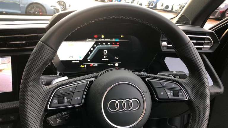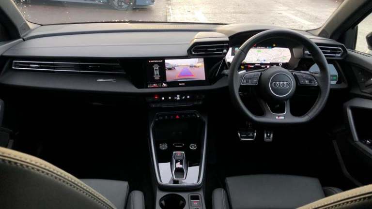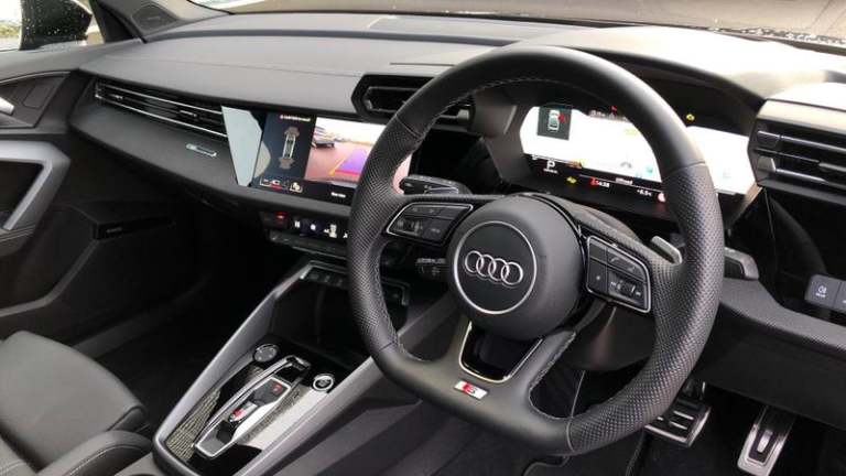 Discover sporty style and everyday practicality with this Audi A3 Saloon Black Edition 35 TFSI 150 PS S tronic (ULEZ) finished to a premium standard and showing just 4,715 miles. With one previous owner, this car comes with full Audi Approved service history and has just benefited from an oil change service carried out at 4,715 miles, giving you extra reassurance from day one.Inside, you are welcomed by heated front seats for added comfort on colder mornings, while the rear camera makes parking and manoeuvring simple and stress free. The Sonos premium sound system transforms every journey with rich, immersive audio, and satellite navigation ensures you always find the best route. A Bluetooth connection keeps you safely connected on the move, and cruise control helps make longer drives more relaxing and economical.When you purchase this A3 Saloon from Mon Motors Cheltenham Audi, you will enjoy all the advantages of the Audi Approved Used scheme, including a minimum 12 month Warranty and 12 months Roadside Assistance. If the car is under three years old, it remains covered by Audi s original 36 month manufacturer warranty, with the remaining term equal to 36 months minus the vehicle s age; vehicles over three years come with a minimum 12 month warranty. This car has passed over 150 meticulous checks by our Audi technicians and is available for immediate delivery.Mon Motors Cheltenham Audi is an official Audi franchise retailer, offering specialist product knowledge, genuine Audi parts and manufacturer trained technicians. Enjoy access to tailored finance options, competitive part exchange valuations and a professional, customer focused team dedicated to making your Audi buying experience seamless and enjoyable, both at the point of sale and throughout your ownership. 19 x 8.0J '5-Y-arm structure' - matt grey - diamond-turned - 235/35 R19 tyres, Reversing camera, Head-up display, Internal control code, Sports suspension, Disc brakes in front, Heat-insulating glazing for windshield, Black Styling Pack with Audi rings in anthracite grey, Inlays in black Impressum woven textile, Adaptive cruise control, SONOS 3D Premium Sound System, MMI experience pro, Assistance package 2 (only for Audi and commercial vehicles), Equipment options subset for Great Britain, Audi beam, Technology Pack, Technology Pack, Technology Pack