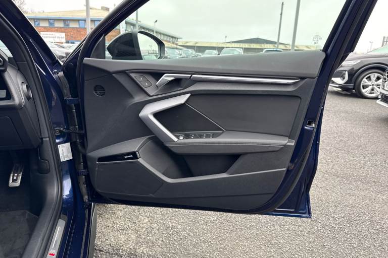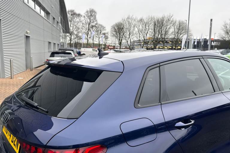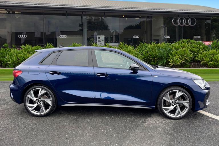 Carlisle Audi is pleased to introduce this Audi A3 Sportback Black Edition. Finished in Navarra Blue, this striking A3 is the perfect upgrade, coming equipped with a 1.5 litre petrol engine. This vehicle sports 150PS that allows you to go from 0 to 62mph in a mere 8.1 seconds. This A3 sits on a set of 19"" 5-Y-arm alloy wheels, and comes equipped with the black exterior pack that includes black grille, badging and details. This model comes equipped with the Technology Pack that includes Adaptive cruise control as well as a Rear View Camera, allowing you to easily park and manoeuvre your vehicle no matter how tight the space. This pack also includes the head up display which projects important information such as your speed and the speed limit at eye level onto your windscreen, allowing you to keep your eyes on the road as you drive. This pack also upgrades the SONOS Sound System, allowing you to listen to all your music in sublime sound quality. This vehicle is compliant with the Clean Air Zone (CAZ) or Ultra Low Emission Zone (ULEZ) standards! Not only will it help you avoid penalties and fines when traveling in the city, but it also means youll be doing your bit to help reduce emissions. With compliance standards becoming increasingly strict, making sure your car is up to scratch is more important than ever.