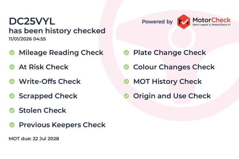 Our vehicle history check is provided for guidance only. Please check all the details with the seller before purchasing