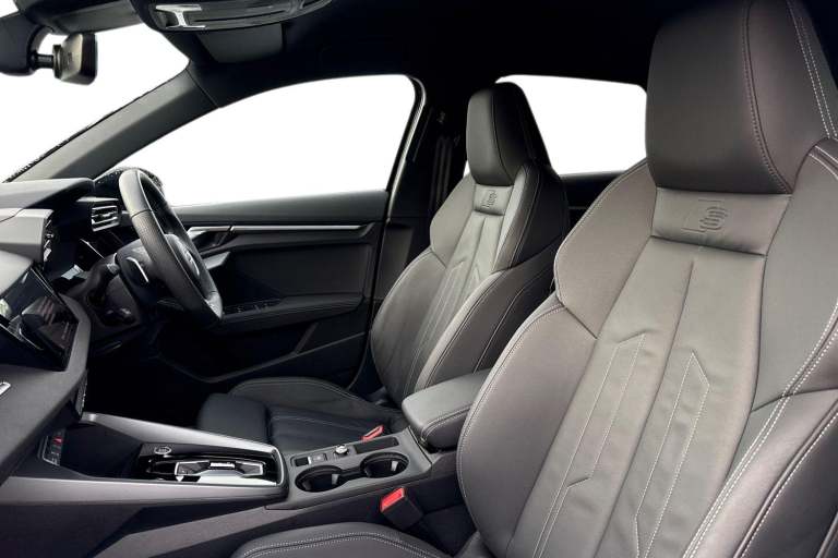 Meet the Audi A3 Sportback Black Edition a statement of precision, performance, and modern luxury designed to stand out at first glance and impress every time you drive. Finished in striking Mythos Black metallic, this A3 Sportback delivers a sleek, athletic presence that reflects Audis unmistakable design language. The Black Edition styling enhances its confident road presence, combining sharp lines with an understated sense of exclusivity. Under the bonnet, the refined 1.5-litre petrol engine paired with a smooth automatic transmission offers responsive performance and everyday efficiency. Whether navigating city streets or cruising on the motorway, it delivers a balanced and composed driving experience. Inside, the cabin is engineered for comfort and immersion. Heated front seats ensure year-round comfort, while the premium Sonos sound system transforms every journey into a high-quality listening experience. Advanced technology is seamlessly integrated throughout. Apple CarPlay and Android Auto provide effortless smartphone connectivity, displayed via the intuitive touchscreen MMI system. A head-up display projects key driving information directly into your line of sight, keeping you informed without distraction. This vehicle is compliant with Clean Air Zone (CAZ) or Ultra Low Emission Zone (ULEZ) regulations, meaning it produces low emissions and helps to improve air quality in our cities. We offer flexible finance packages* Terms & conditions apply. For further...