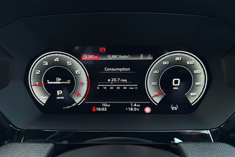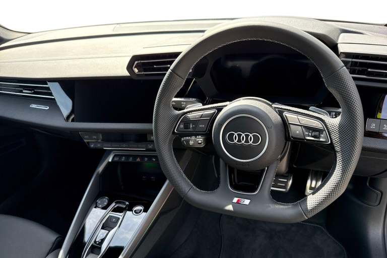 Discover the perfect blend of style, technology and everyday practicality with this Approved Used Audi A3 Black Edition, finished in sleek Daytona Grey and powered by a refined 1.5 TFSI petrol engine paired with the smooth S tronic automatic gearbox. On the outside, the Black Styling Pack enhances the cars bold road presence, with Audi rings in anthracite grey, black door mirror housings, and sporty S line bumpers. Striking 19-inch 5-Y-arm design alloy wheels in matt grey with diamond-turned finish complement the look, while LED headlights with dynamic rear indicators and privacy glass give a premium edge. Inside, the cabin combines a driver-focused layout with premium materials. Front sports seats upholstered in quality finishes with heating and 4-way lumbar support, a flat-bottomed leather multifunction steering wheel with gearshift paddles, and stainless steel pedals set a sporty tone. Ambient mood comes courtesy of the multi-coloured extended LED interior light pack, while black Impressum woven textile inlays and S-logo illuminated door sills complete the exclusive Black Edition trim. Technology is a highlight, with the MMI Navigation Plus on a crisp 10.1-inch colour touchscreen, Audi Virtual Cockpit Plus, and seamless smartphone connectivity via Audi Smartphone Interface. The Technology Pack elevates this A3 further with a head-up display, MMI experience pro, a premium SONOS 3D sound system and a reversing camera paired with the Park Assist Pack for effortless manoeu...