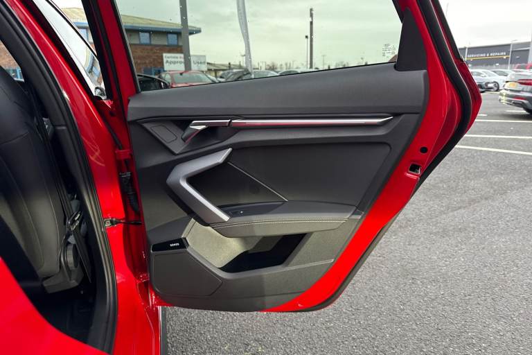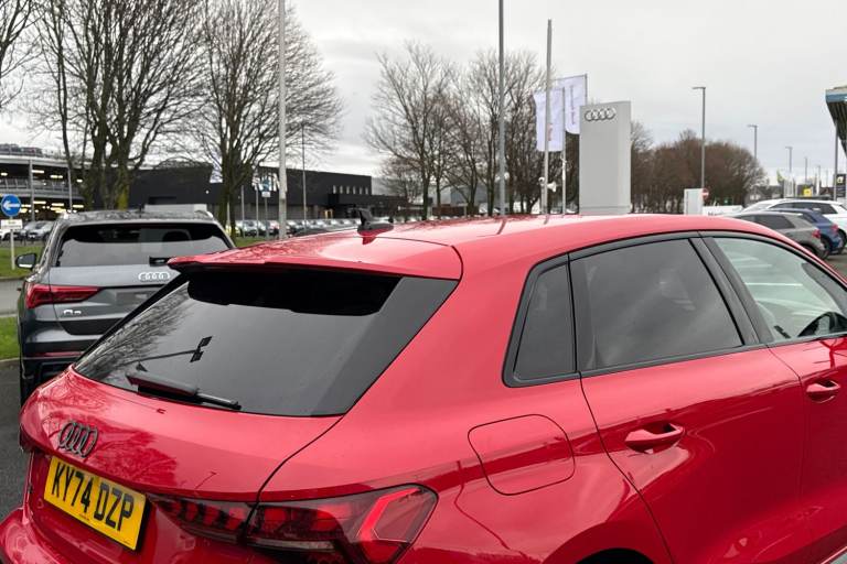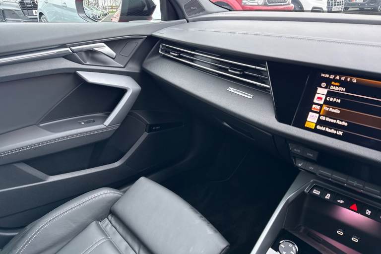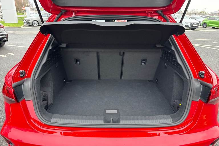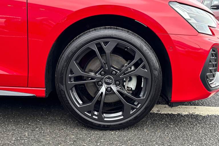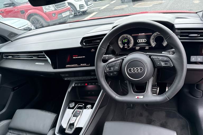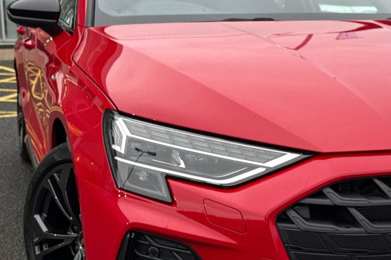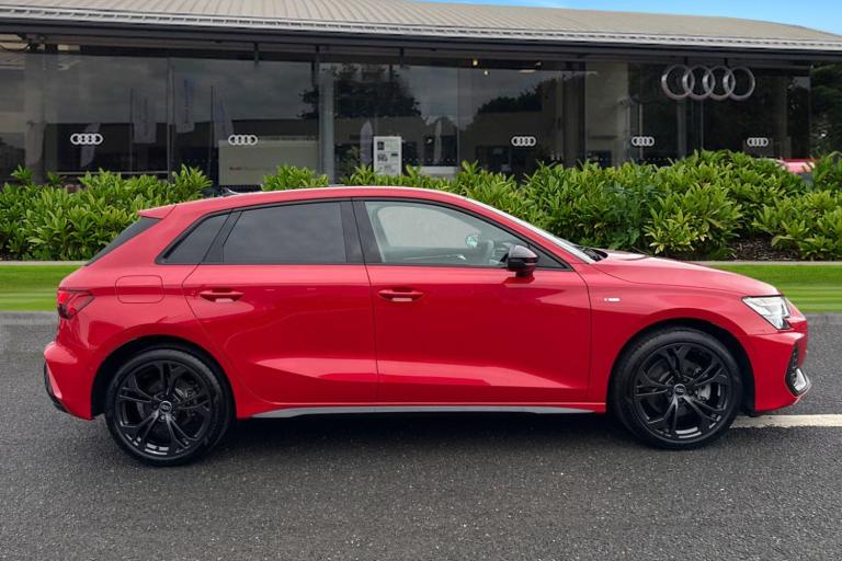 Finished in progressive red this Audi A3 Black Edition is the perfect upgrade. This hybrid model boasts a 1.5 litre petrol engine, and an impressive battery range of up to 81 miles, offering an efficient and dynamic driving experience. This A3 sits on a dynamic set of 18"" 5-Y-twin-spoke alloy wheels in a black finish. The exterior also comes with the black appearance package which includes black grille, badging and details. This model comes equipped with the Technology Pack that includes Adaptive cruise control as well as a Rear View Camera, allowing you to easily park and manoeuvre your vehicle no matter how tight the space. This pack also includes the head up display which projects important information such as your speed and the speed limit at eye level onto your windscreen, allowing you to keep your eyes on the road as you drive. This pack also upgrades the SONOS Sound System, allowing you to listen to all your music in sublime sound quality. Inside, youll find the dash equipped with an MMI Touchscreen, allowing you to control your Drive Select, which allows you to customise aspects of your vehicle to suit your driving style, youll also be able to control your Audi Smartphone Interface which includes use of both Android Auto and Apple Carplay. In front of the driver is the multifunction steering wheel that allows you to easily control your music, cruise control and Audi Virtual Cockpit. Here you can see information about your car, phone connectivity and navigation s...