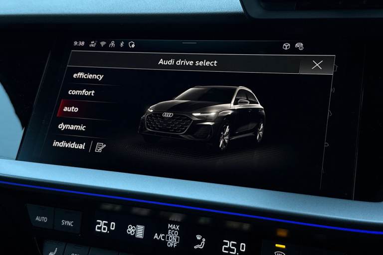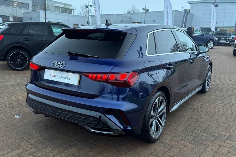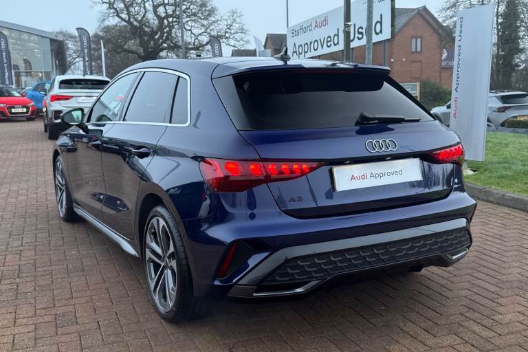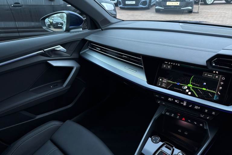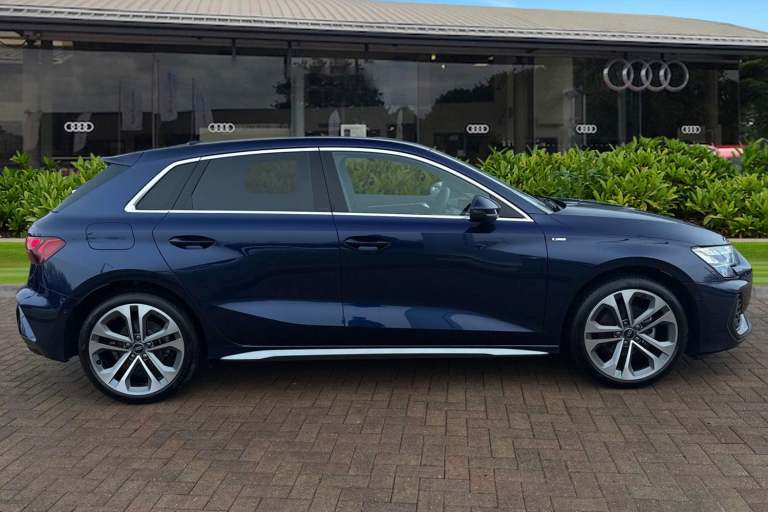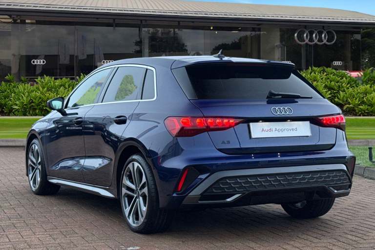 Turn heads with the Audi A3 Sportback finished in striking Navarra Bluea perfect blend of premium design, compact versatility, and unmistakable Audi presence. Its sleek Sportback silhouette delivers both visual impact and everyday practicality, making it as impressive on city streets as it is on longer journeys. Powered by a responsive 1.5L petrol engine paired with a smooth automatic transmission, this A3 offers refined performance with effortless drivability. Audi Drive Select allows you to tailor the driving experience to your mood, whether you prefer comfort for daily commuting or a more dynamic feel on open roads. Inside, the cabin reflects Audis commitment to technology and driver-focused design. The touchscreen MMI system supports Apple CarPlay and Android Auto for seamless smartphone integration, while the multifunction steering wheel keeps key controls at your fingertips. Rear parking sensors add confidence when manoeuvring, completing a package that is both sophisticated and practical. This vehicle is compliant with Clean Air Zone (CAZ) or Ultra Low Emission Zone (ULEZ) regulations, meaning it produces low emissions and helps to improve air quality in our cities. We offer flexible finance packages* Terms & conditions apply. For further information or a finance quote please call our sales team.