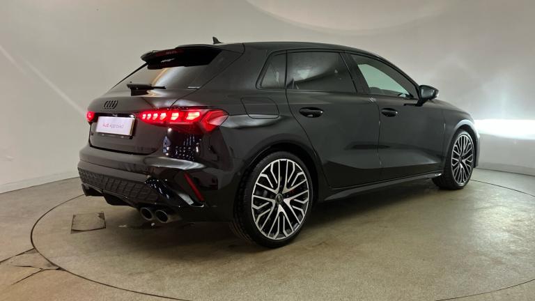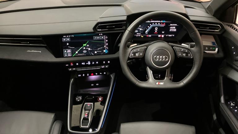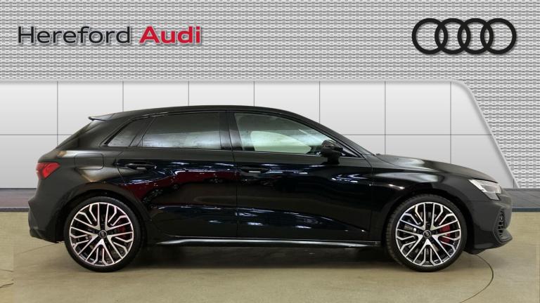*** Audi Approved Used *** Introducing this 25 plate Audi S3 Sportback Black Edition TFSI 333 PS S tronic, finished in the striking Mythos Black for a truly stealthy and performance-focused look. Delivering exhilarating power through Audi’s latest 333 PS TFSI engine and lightning-fast S tronic transmission, the S3 offers thrilling performance with everyday usability.The Black Edition styling enhances its aggressive stance, while the upgraded red brake calipers add a bold motorsport-inspired contrast, perfectly complementing the car’s dynamic character. Inside, the S3 combines premium materials, cutting-edge technology and sports-focused design to create an engaging yet refined driving environment.This vehicle is Audi Approved, having undergone a rigorous multi-point inspection and supplied with a minimum 12-month Audi warranty, 12 months roadside assistance, and MOT cover where applicable, providing complete confidence and peace of mind.A superb opportunity to own a high-performance, high-specification S3 in one of Audi’s most desirable colour combinations..Air Conditioning, Climate Control, Metallic Paint, Cruise Control, Satellite Navigation, Alloy Wheels, Leather Seats, Heated Seats, DAB Radio, Bluetooth, Stop Start, Low Mileage, Manufacturer Approved, Adaptive cruise, Keyless Entry-Push Button Start, Apple-Android Play, Rear Camera, Auto Lights, Electric Folding Mirrors, Rain Sensors& 4x4, Black front and rear floor mats, Rear wiper, Rear electric windows, Front electric windows, Heat insulating glass windscreen, Privacy glass - dark tinted rear window, rear door and side windows, Electronic Stabilisation Control (ESC) including ABS, ASR and EDL, S sport suspension with spring damper adjustment and lowering by 15mm, Bluetooth interface, Voice control system with natural language interaction, Audi smartphone interface with app store includes wireless Apple carplay, Android auto and Amazon alexa integration, Lane departure warning system, Hill hold assist, Audi drive select, Adjustable speed limiter