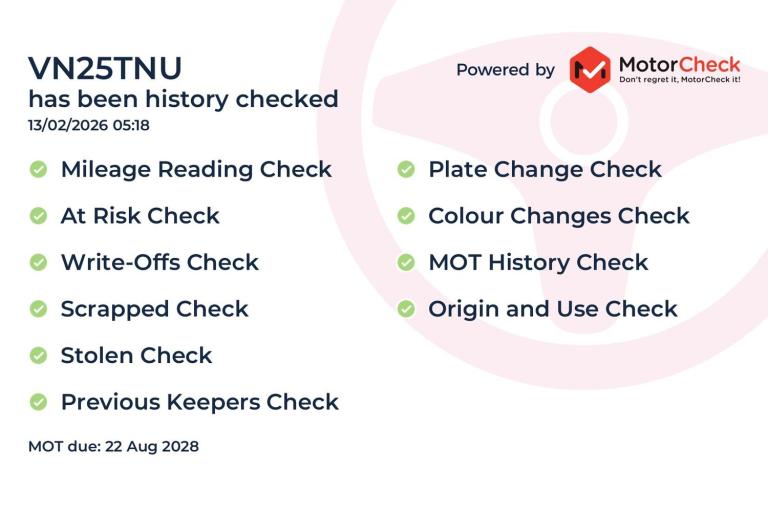 Our vehicle history check is provided for guidance only. Please check all the details with the seller before purchasing