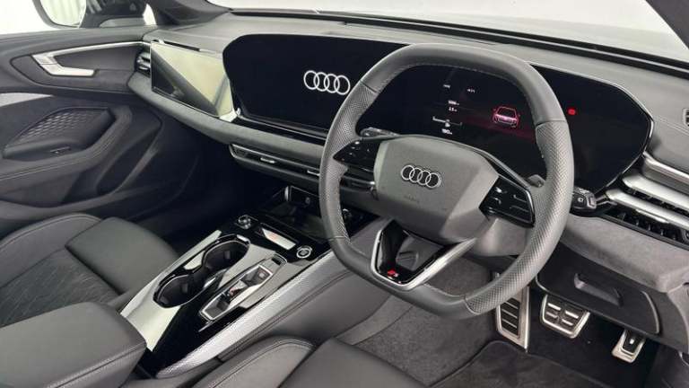 Memory function for the driver seat and the exterior mirrors, MMI front passenger display, Surround view camera, Dinamica Microfibre with diamond stitching and 'S' embossed logo (Dinamica microfibre/artificial leather combination), Exterior package - black, Brake calipers painted Red, Tech plus, Interior S with sport seats in Dinamica microfiber/leather combination - Black, Sports seats in front, Wraparound interior elements in Dinamica microfiber, 20 x 8.5J '5-arm fold' design Audi Sport alloy wheels in silk matt grey and gloss turned finish with 245/35 R20 tyres, Door sill trims with aluminum inlays - front - illuminated - S logo, Equipment package for Great Britain, Internal control code, Tailpipe trims - dark chrome-plated, Sport suspension, Disk brakes - rear - 16-inch - brake calipers in Red, Sport leather steering wheel - 3-spoke - flat top and bottom with multifunction and shift paddles, Disk brakes - front - 17-inch - brake calipers in Red, Steering wheel adjustment - manual, Audi digital key, Bumpers - S line, Front seats - electrically adjustable, Roof rails in Black, Window trim strips and attachments - dark, Inlays - matt brushed aluminium with linear embossing - anthracite, Rear occupant detection, Front head restraints, Side airbags - front and rear with head airbag system and interaction airbag - front, Comfort center armrest - front, Black exterior mirror housings, Steering wheel trim in chrome look - S emblem - steer. wheel. side parts in perforated leather