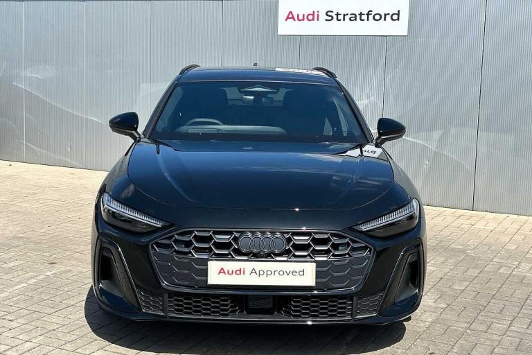 Available from 26/09/2025. Audi A5 Avant 2.0 TFSI 204 Edition 1 5dr S Tronic in Mythos black, metallic. Specification Includes Memory function for the driver seat and the exterior mirrors,Without steering wheel heating,MMI front passenger display,Intersection assist,Surround view camera,Head-up display,Dinamica Microfibre with diamond stitching and 'S' embossed logo (Dinamica microfibre/artificial leather combination),Exterior package, black,Brake calipers painted Red,Tech plus,S line exterior styling,Sun protection glass, tinted,Ambient Lighting package pro,Sports seats in front,Wraparound interior elements in Dinamica microfiber,20in x 8.5J '5-arm fold' design Audi Sport alloy wheels in silk matt grey and gloss turned finish with 245/35 R20 tyres,USB interfaces with higher charging capacity,Without garage door opener,Stainless steel pedals and footrest,Door sill trims with aluminum inlays, front, illuminated, S logo,Equipment package for Great Britain,Sound and Vision Pack,Interior S with sport seats in Dinamica microfiber/leather comb., Black, color. stitching in Red, Audi Sport GmbH,Tailpipe trims, dark chrome-plated,Sport suspension,White rhombus logo projection light in exterior mirrors,Disk brakes, rear, 16-inch, brake calipers in Red,Sport leather steering wheel, 3-spoke, flat top and bottom with multifunction and shift paddles,Disk brakes, front, 17-inch, brake calipers in Red,Steering wheel adjustment, manual,Digital key,Bumpers, S line,Panoramic glass roof with switchable transparency,Front seats, electrically adjustable,Roof rails in Black,Swerve assist and front turn assist,Convenience key with Safelock,Window trim strips and attachments, dark,Inlays, Carbon Micro Twill, Structure,Rear occupant detection,Side airbags, front and rear with head airbag system and interaction airbag, front,Comfort center armrest, front,Black exterior mirror housings,Steering wheel trim in chrome look, S emblem, st. wheel grips in perforated leather and contrasting stitching,Lane departure warning with emergency assist,Black door handles,Headlining in cloth, Black,Exterior mirrors, electrically adjustable heated and folding with automatic dimming on both sides,Upper and lower interior elements with contrasting stitching,4-way lumbar support for the front seats,Proactive occupant protection, front, side and rear,Side assist and exit warning, rear cross-traffic assist and rear turn assist,Matrix LED headlights with eight selectable light signatures,Matrix LED