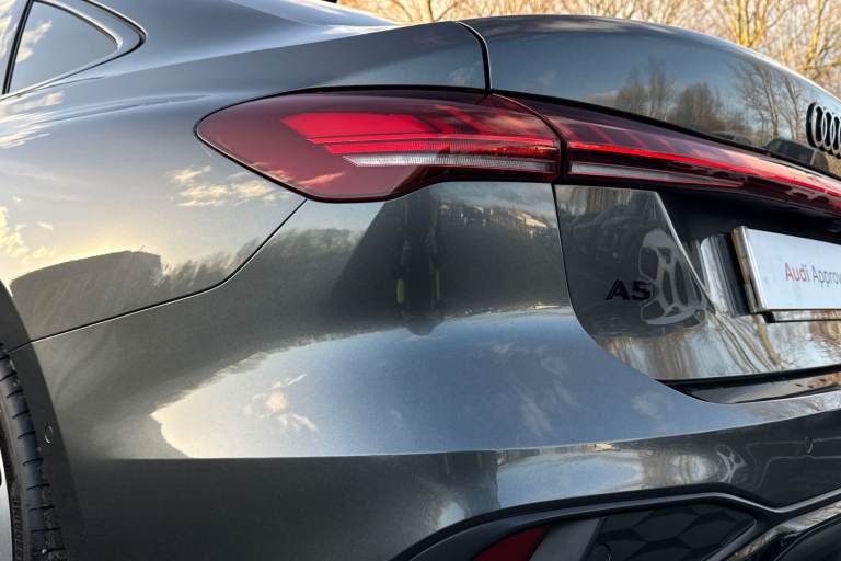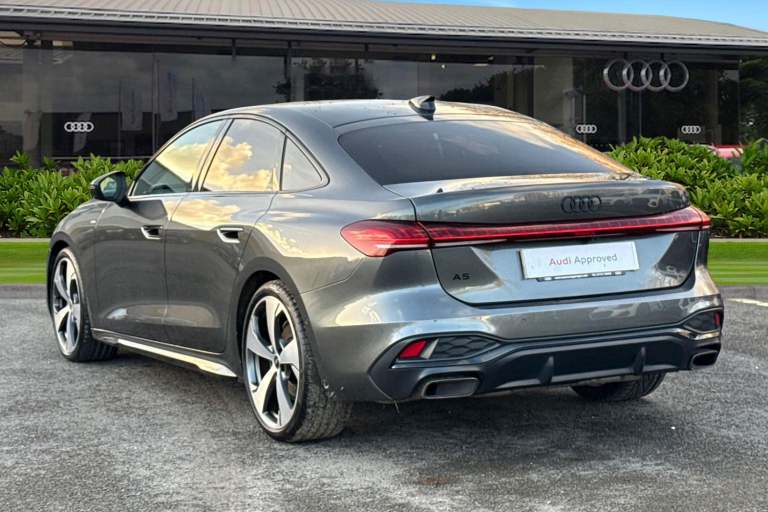 Introducing this Approved Used Audi A5 Saloon Edition 1 TFSI 150 PS S tronic in sleek Daytona Grey, blending striking design, advanced technology, and everyday usability, making it a compelling choice in the premium saloon segment. The Edition 1 specification elevates the A5s coupe-inspired silhouette with a confident and contemporary presence. Striking Matrix LED headlights provide exceptional visibility and feature Audis distinctive light signatures, while the large 20"" alloy wheels enhance the vehicles athletic stance and visual appeal. Subtle exterior detailing complements the sleek Daytona Grey finish, creating a sophisticated and modern appearance. Powered by the efficient and responsive TFSI petrol engine producing 150 PS, this A5 is paired with a smooth and refined S tronic automatic transmission, delivering effortless acceleration and relaxed cruising. The well-balanced chassis ensures a composed and comfortable drive, equally suited to urban journeys and longer motorway trips. Inside, the cabin showcases Audis renowned build quality and attention to detail. Deluxe 3-zone climate control allows personalised comfort for all occupants, while heated front seats provide added luxury in colder conditions. The flat-top and flat-bottomed leather multifunction steering wheel enhances the sporting feel of the interior and places key controls easily within reach. Interior ambient lighting creates a refined and welcoming atmosphere, particularly during evening drives. E...