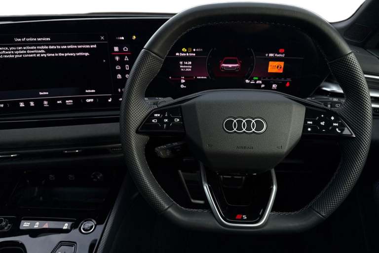 This Audi A5 Avant Edition 1 is presented in the striking Ascari Blue finish, giving the vehicle a refined yet sporty appearance. It is powered by a 2.0-litre petrol engine, paired with a smooth automatic transmission, delivering a balanced combination of performance and everyday drivability. The vehicle is equipped with a Bang & Olufsen premium sound system with 3D sound, incorporating integrated headrest speakers for an immersive audio experience. The MMI front passenger display enhances in-car entertainment and connectivity for all occupants. Parking and low-speed manoeuvring are made effortless with the inclusion of a 360-degree parking camera, supported by both front and rear parking sensors for added confidence and safety. Comfort is prioritised through heated front seats, which are electrically adjustable to allow precise positioning and personalised support for the driver and front passenger. Additional driver-focused technology includes a head-up display, projecting key driving information directly into the drivers line of sight to improve awareness while on the road. This vehicle is compliant with Clean Air Zone (CAZ) or Ultra Low Emission Zone (ULEZ) regulations, meaning it produces low emissions and helps to improve air quality in our cities. We offer flexible finance packages* Terms & conditions apply. For further information or a finance quote please call our sales team.