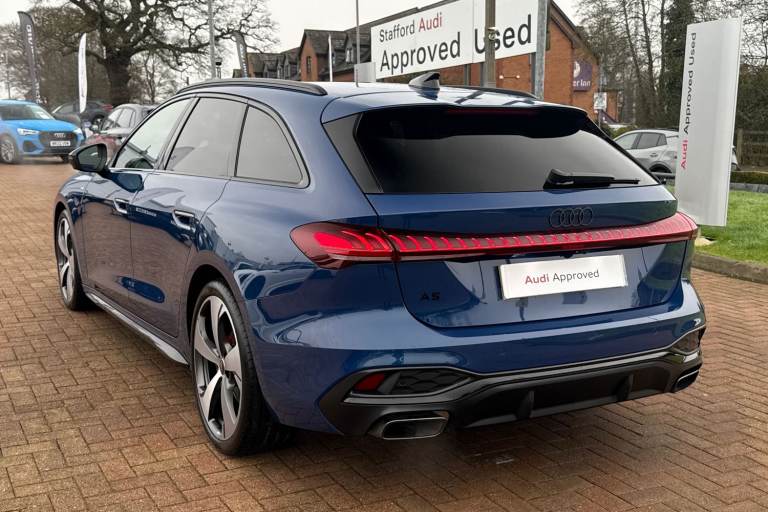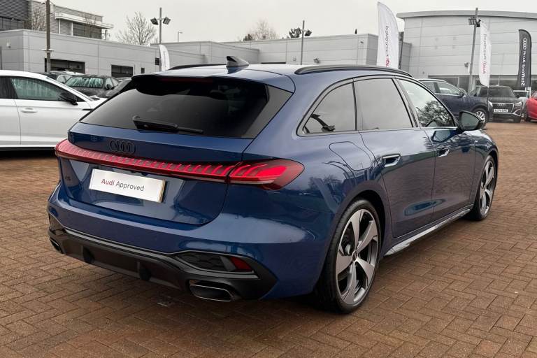 Finished in the elegant Ascari Blue, this Audi A5 Avant Edition 1 offers a distinctive and modern presence on the road. Under the bonnet is a responsive 2.0-litre petrol engine, matched with an automatic gearbox that provides smooth, effortless driving in both urban and motorway conditions. The interior is enhanced by a Bang & Olufsen premium sound system with immersive 3D audio, including integrated headrest speakers for a refined listening experience. An MMI front passenger display adds convenience and entertainment, allowing passengers to interact with vehicle functions independently. Advanced parking assistance is provided through a 360-degree camera system, complemented by front and rear parking sensors to make parking and tight manoeuvres simple and stress-free. For added comfort, the front seats are heated and electrically adjustable, enabling optimal seating positions and improved comfort during colder journeys. Key driving information is projected via the head-up display, allowing the driver to stay informed while keeping full attention on the road ahead. This vehicle is compliant with Clean Air Zone (CAZ) or Ultra Low Emission Zone (ULEZ) regulations, meaning it produces low emissions and helps to improve air quality in our cities. We offer flexible finance packages* Terms & conditions apply. For further information or a finance quote please call our sales team.