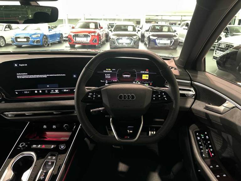 Available from 02/03/2026. Audi A6 Saloon 2.0 TFSI 204 Edition 1 4dr S Tronic in Daytona grey, pearl effect. Specification Includes 20in wheels, 5-arm gloss grey,Operating permit, alteration,S line,Adaptive cruise assist plus,MMI front passenger display,Front cross-traffic assist,Surround view cameras,Dinamica microfiber/leather combination with rhombus stitching and 'S' embossed logo,Exterior package, Black,Brake calipers painted Red,Tech plus,Interior S with sport seats in Dinamica microfiber/leather combination, Black,S line exterior,Sun protection glass, tinted,Sport seats, front,Upper and lower interior elements in Dinamica microfiber,Stainless steel pedals and footrest,Door sill trims with aluminum inlays, front, illuminated, S emblem,Equipment package for Great Britain,Internal control code,AER:0P9,Tech plus,S sport suspension,Projection light in the exterior mirrors,Disk brakes, front, 17-inch, brake calipers in Red,Sport leather steering wheel, 3-spoke, flat top and bottom with multifunction and shift paddles,Disk brakes, rear, 17-inch, brake calipers in Red,Bumpers, S line,Swerve assist and turn assist,Interior mirror, automatically dimming,Window trim strips and attachments, dark,Inlays, Carbon Micro Twill, Structure,Head restraints, front,Side airbags in front and rear with head airbag system and front interaction airbag,Comfort center armrest, front,Black exterior mirror housings,Steering wheel trim in chrome look, S emblem, st. wheel grips in perforated leather and contrasting stitching,Lane departure warning with emergency assist,Black door handle inserts,Headlining in cloth, Black,Exterior mirrors, electrically, adjustable, heated and folding, on automatically dimming on both sides,Upper and lower interior elements with contrasting stitching,4-way lumbar support for the front seats,Proactive passenger protection system for front, sides and rear,Side assist with exit warning and rear cross-traffic assist,Matrix LED headlights with dynamic indicator,LED headlights plus,LED rear lights pro,Headlight cleaning system,4-zone deluxe automatic air conditioning,Control number for comfort package,Climate Control package plus,Assist package Drive and Park plus,Assist package, protective and warning systems plus,Interior equipment 13,Equipment options subset for Great Britain.