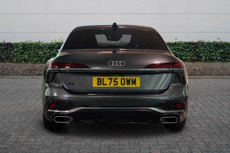 Available from 31/03/2026. Audi A6 Saloon 2.0 TFSI 204 S line 4dr S Tronic in Daytona grey, pearl effect. Specification Includes 19in wheels, 5-arm, Platinum grey,Operating permit, alteration,S line,Leather/leatherette combination with embossed 'S',Interior S with sport seats in leather/artificial leather combination, Black,S line exterior,Sun protection glass, tinted,Sport seats, front,Wraparound interior elements in artificial leather,Stainless steel pedals and footrest,Door sill trims with aluminum inlays, front, illuminated, S emblem,Equipment package for Great Britain,Internal control code,S sport suspension,Sport leather steering wheel, 3-spoke, flat top and bottom with multifunction and shift paddles,Bumpers, S line,Inlays, matt brushed aluminium with linear embossing, anthracite,Head restraints, front,Comfort center armrest, front,Steering wheel trim in chrome look, S emblem, st. wheel grips in perforated leather and contrasting stitching,Headlining in cloth, Black,Upper and lower interior elements with contrasting stitching,4-way lumbar support for the front seats,Interior equipment 10,Equipment options subset for Great Britain.